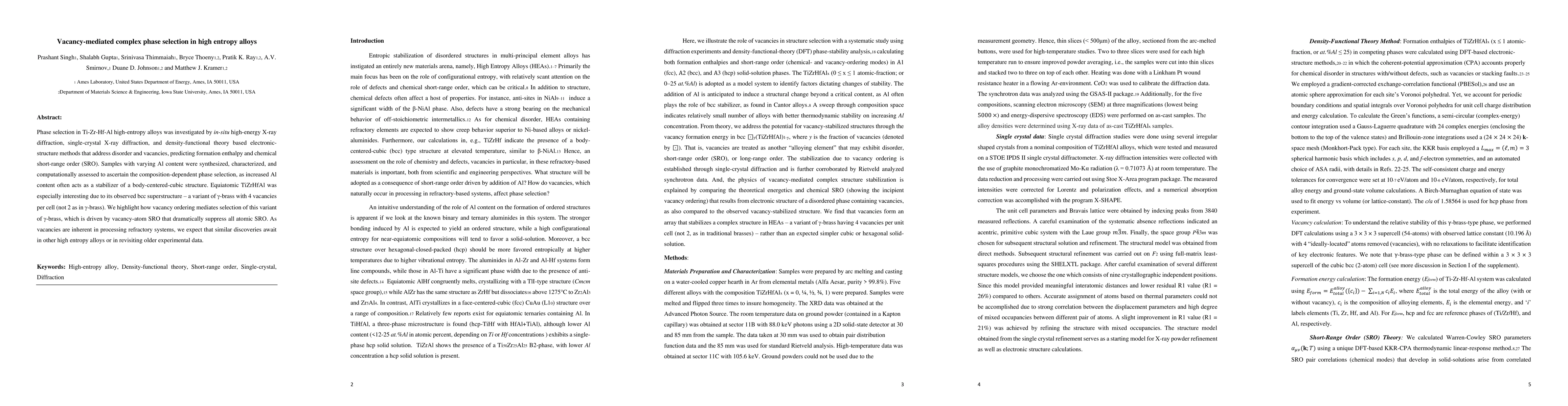 This study explores the phase selection in Ti-Zr-Hf-Al high-entropy alloys using advanced diffraction techniques and computational methods, revealing that vacancy ordering significantly influences the formation of a body-centered-cubic structure, particularly in equiatomic TiZrHfAl. The findings suggest that vacancy-atom interactions suppress atomic short-range order, highlighting the role of vacancies in determining complex phase structures in high entropy alloys.