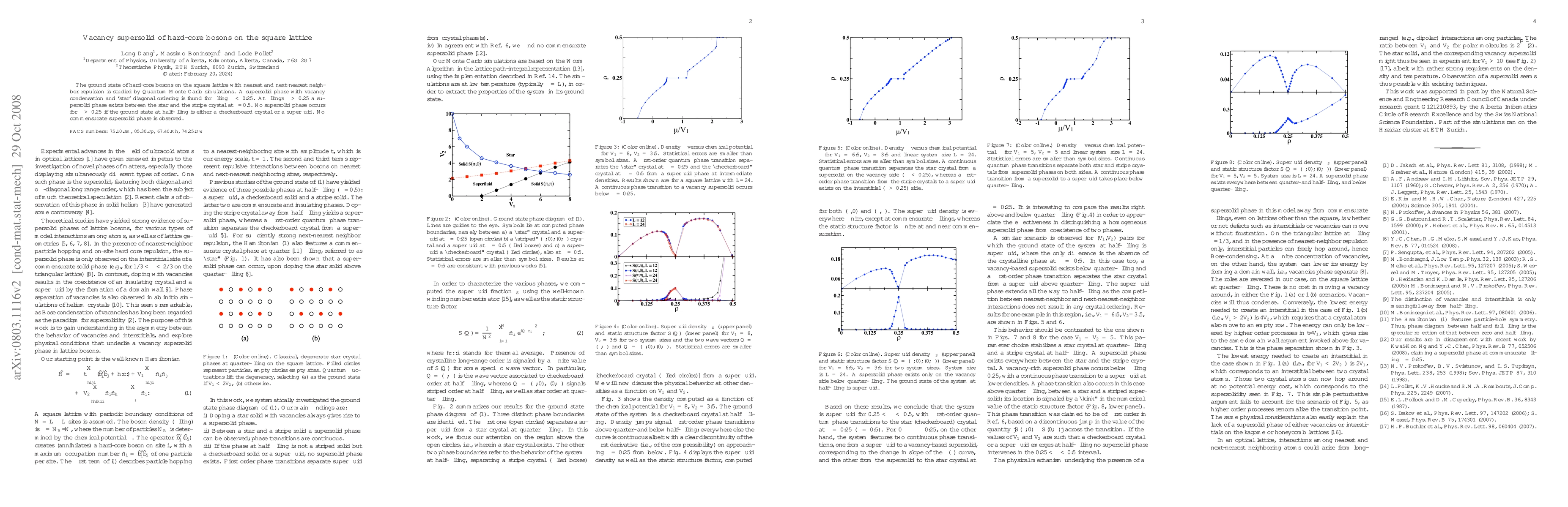 This study reveals a vacancy supersolid phase in hard-core bosons on a square lattice, characterized by vacancy condensation and 'star' diagonal ordering, observed via Quantum Monte Carlo simulations. Above quarter-filling, a supersolid phase exists between the star and stripe crystal phases, but not above half-filling if the ground state is a checkerboard crystal or superfluid.