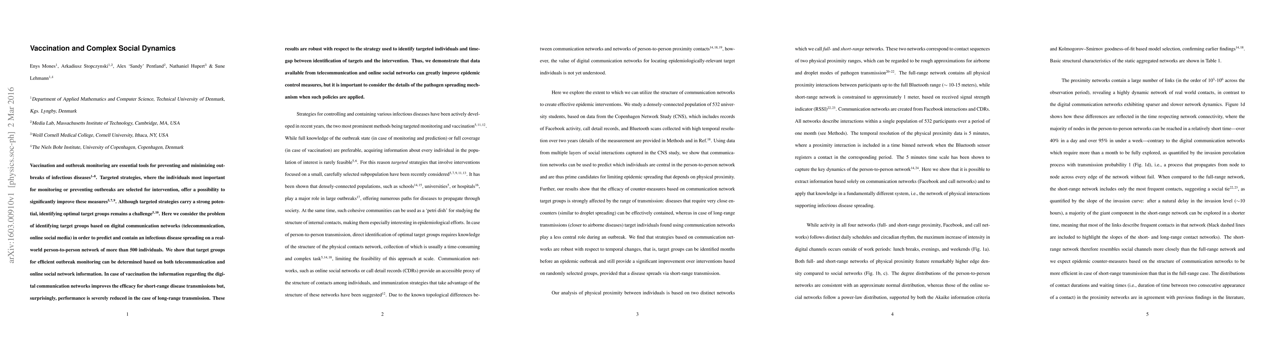 Vaccination and outbreak monitoring are essential tools for preventing and minimizing outbreaks of infectious diseases. Targeted strategies, where the individuals most important for monitoring or preventing outbreaks are selected for intervention, offer a possibility to significantly improve these measures. Although targeted strategies carry a strong potential, identifying optimal target groups remains a challenge. Here we consider the problem of identifying target groups based on digital communication networks (telecommunication, online social media) in order to predict and contain an infectious disease spreading on a real-world person-to-person network of more than 500 individuals. We show that target groups for efficient outbreak monitoring can be determined based on both telecommunication and online social network information. In case of vaccination the information regarding the digital communication networks improves the efficacy for short-range disease transmissions but, surprisingly, performance is severely reduced in the case of long-range transmission. These results are robust with respect to the strategy used to identify targeted individuals and time-gap between identification of targets and the intervention. Thus, we demonstrate that data available from telecommunication and online social networks can greatly improve epidemic control measures, but it is important to consider the details of the pathogen spreading mechanism when such policies are applied.