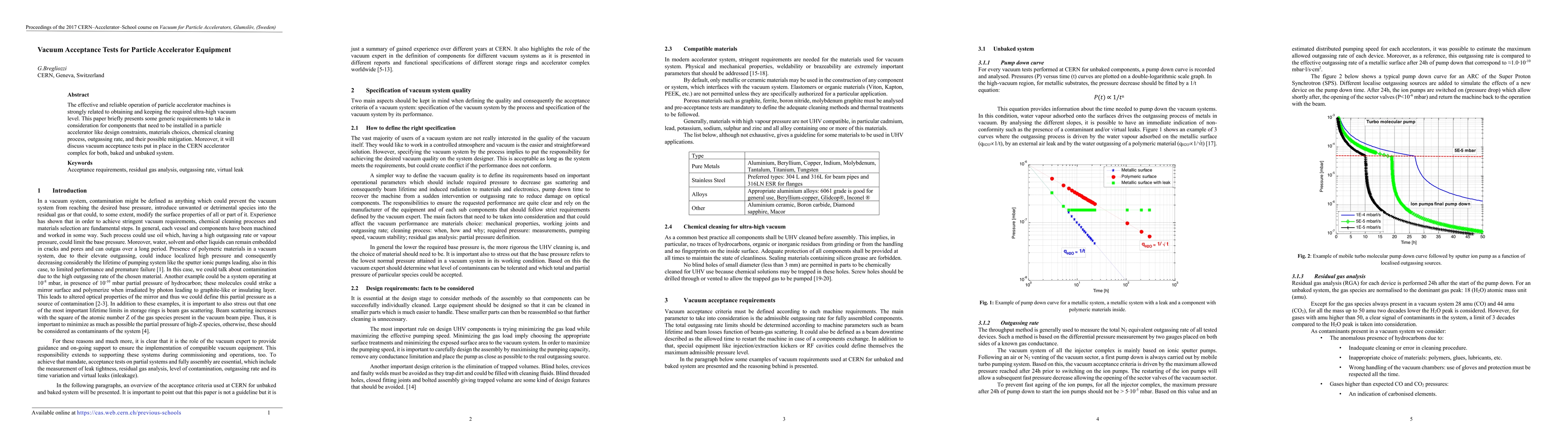 The effective and reliable operation of particle accelerator machines is strongly related to obtaining and keeping the required ultra-high vacuum level. This paper briefly presents some generic requirements to take in consideration for components that need to be installed in a particle accelerator like design constraints, materials choices, chemical cleaning process, outgassing rate, and their possible mitigation. Moreover, it will discuss vacuum acceptance tests put in place in the CERN accelerator complex for both, baked and unbaked system.