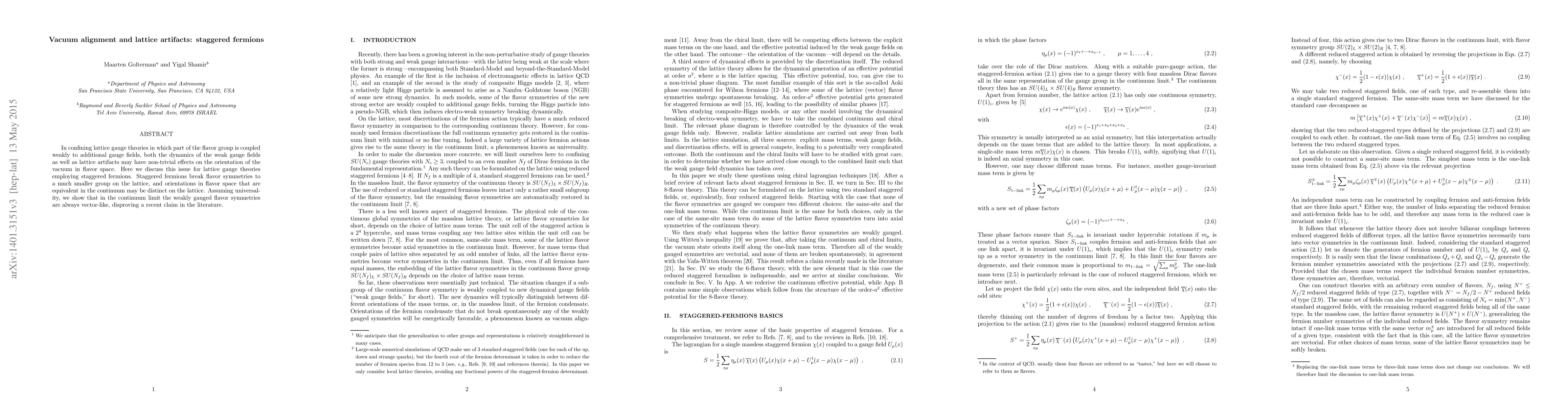 In confining lattice gauge theories in which part of the flavor group is coupled weakly to additional gauge fields, both the dynamics of the weak gauge fields as well as lattice artifacts may have non-trivial effects on the orientation of the vacuum in flavor space. Here we discuss this issue for lattice gauge theories employing staggered fermions. Staggered fermions break flavor symmetries to a much smaller group on the lattice, and orientations in flavor space that are equivalent in the continuum may be distinct on the lattice. Assuming universality, we show that in the continuum limit the weakly gauged flavor symmetries are always vector-like, disproving a recent claim in the literature.