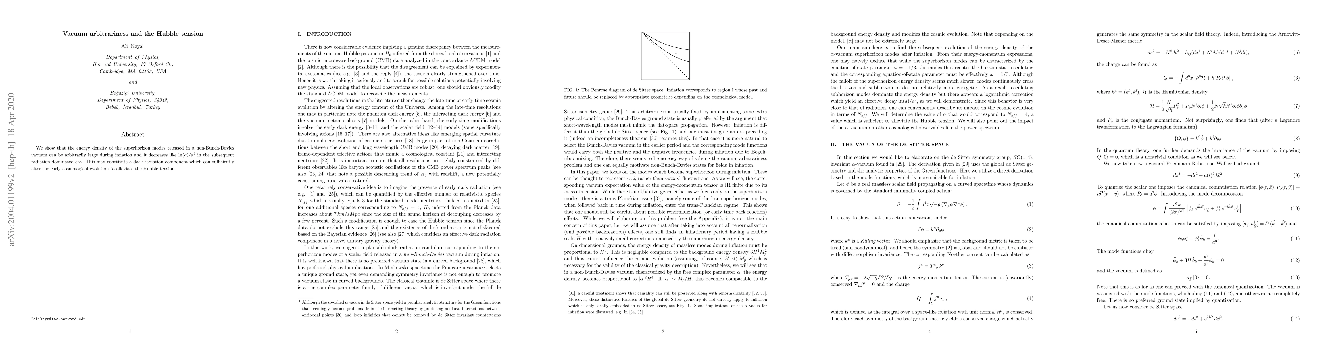 We show that the energy density of the superhorizon modes released in a non-Bunch-Davies vacuum can be arbitrarily large during inflation and it decreases like ln(a)/a^4 in the subsequent radiation dominated era. This may constitute a dark radiation component which can sufficiently alter the early cosmological evolution to alleviate the Hubble tension.