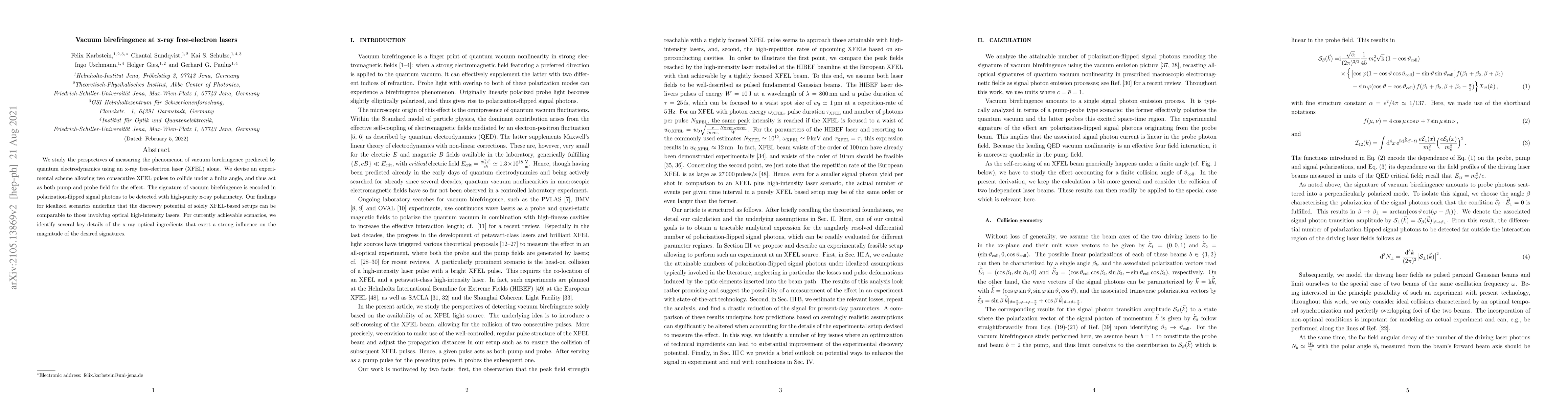 This paper explores the feasibility of measuring vacuum birefringence using an x-ray free-electron laser (XFEL) by devising an experimental setup where the XFEL beam self-collides. The study finds that XFEL-based experiments could potentially achieve results comparable to optical high-intensity laser setups, highlighting key x-ray optical parameters that influence the observed signatures.