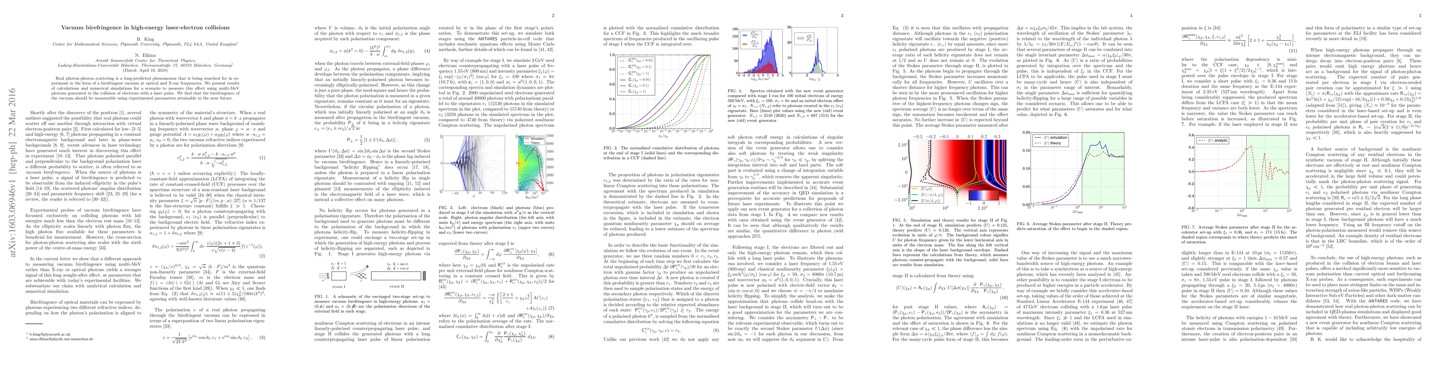 This paper investigates the potential for measuring vacuum birefringence through high-energy laser-electron collisions, predicting that multi-MeV photons generated in such collisions could reveal this long-predicted phenomenon, with experimental parameters feasible in the near future.