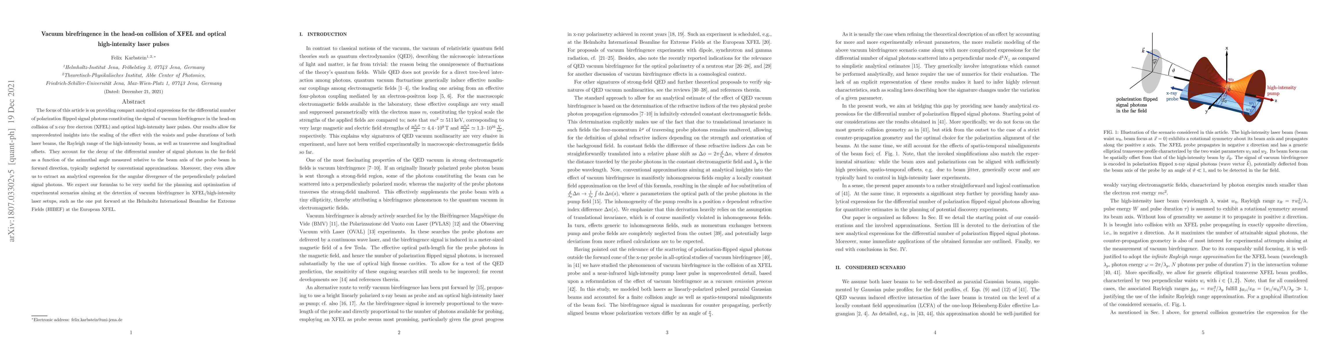 This paper presents analytical expressions for vacuum birefringence in the collision of XFEL and optical high-intensity laser pulses, detailing the differential number of polarization flipped signal photons. The results provide insights into the effect's scaling with laser beam parameters and allow for optimization of experimental setups for detecting this phenomenon.