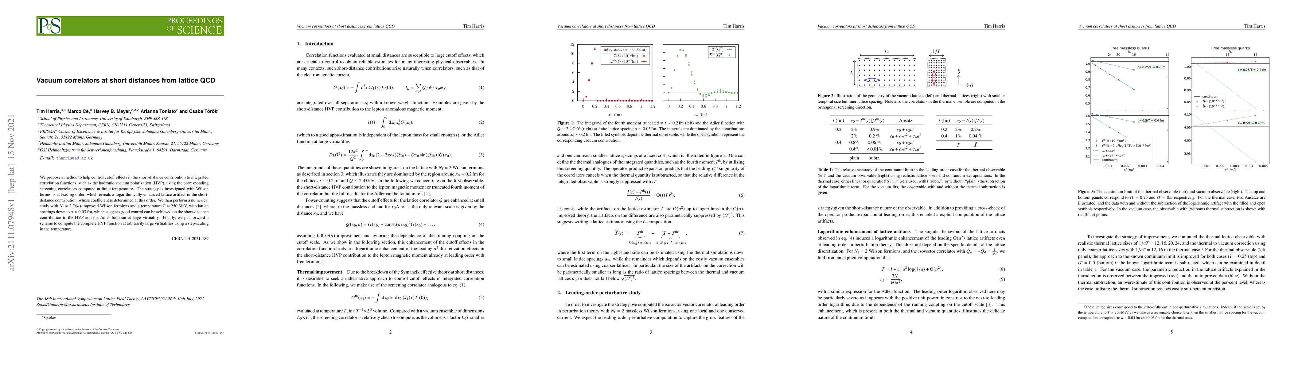 This paper proposes a method to mitigate cutoff effects in short-distance contributions to correlation functions using finite-temperature screening correlators computed via lattice QCD. Numerical studies with improved Wilson fermions suggest effective control over these contributions, and a scheme is introduced for computing the full vacuum polarization function at large virtualities.