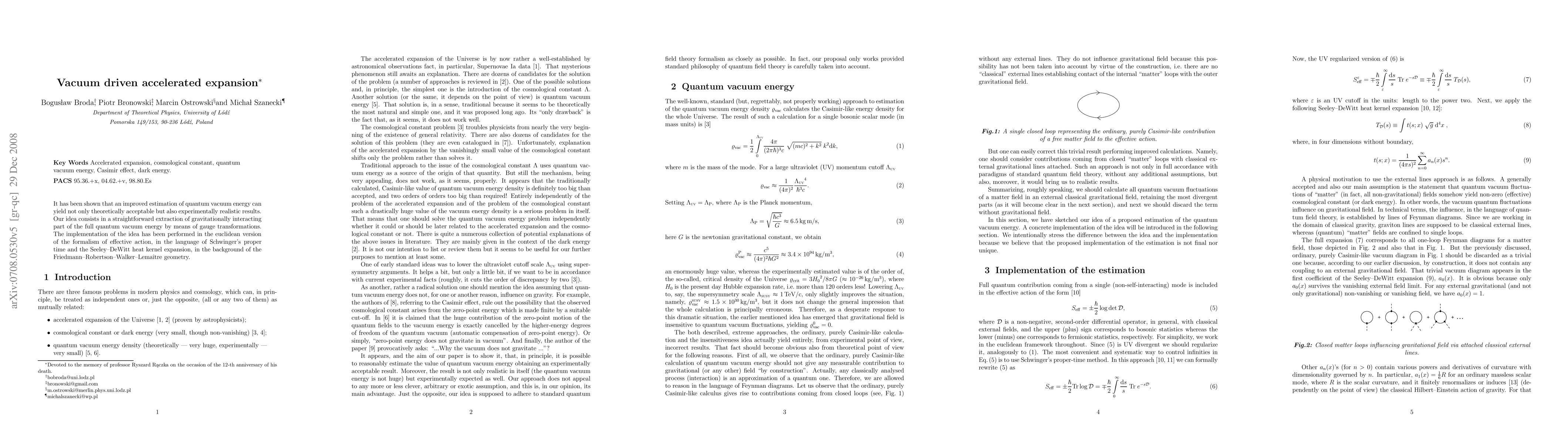 It has been shown that an improved estimation of quantum vacuum energy can yield not only acceptable but also experimentally sensible results. The very idea consists in a straightforward extraction of gravitationally interacting part of the full quantum vacuum energy by means of gauge transformations. The implementation of the idea has been performed in the formalism of effective action, in the language of Schwinger's proper time and the Seeley-DeWitt heat kernel expansion, in the background of the Friedmann-Robertson-Walker geometry.