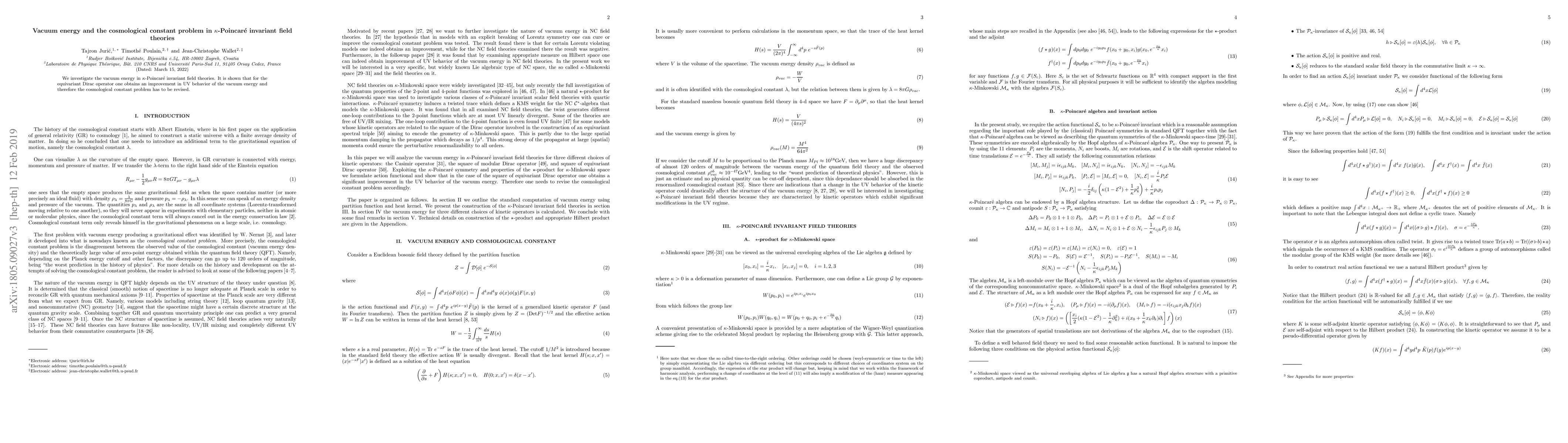 Summary: This paper examines vacuum energy within $\kappa$-Poincar\'e invariant field theories, revealing an enhanced ultraviolet behavior for the equivariant Dirac operator, necessitating a reevaluation of the cosmological constant problem.