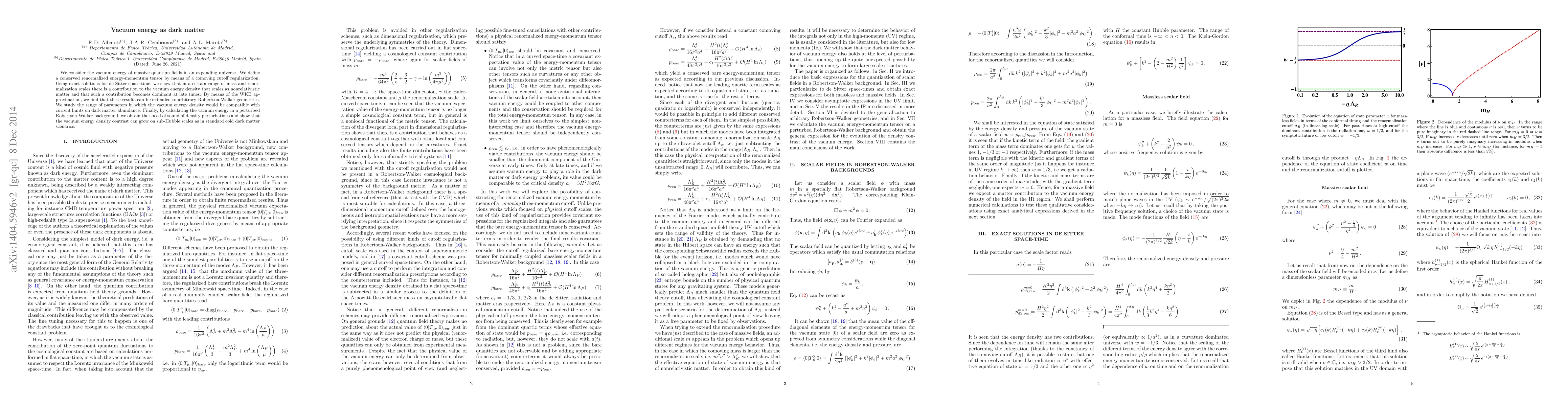 This paper explores the possibility that vacuum energy from massive quantum fields could constitute dark matter. It demonstrates that under certain conditions, vacuum energy behaves like nonrelativistic matter, becoming dominant at late times and potentially compatible with observed dark matter abundance.