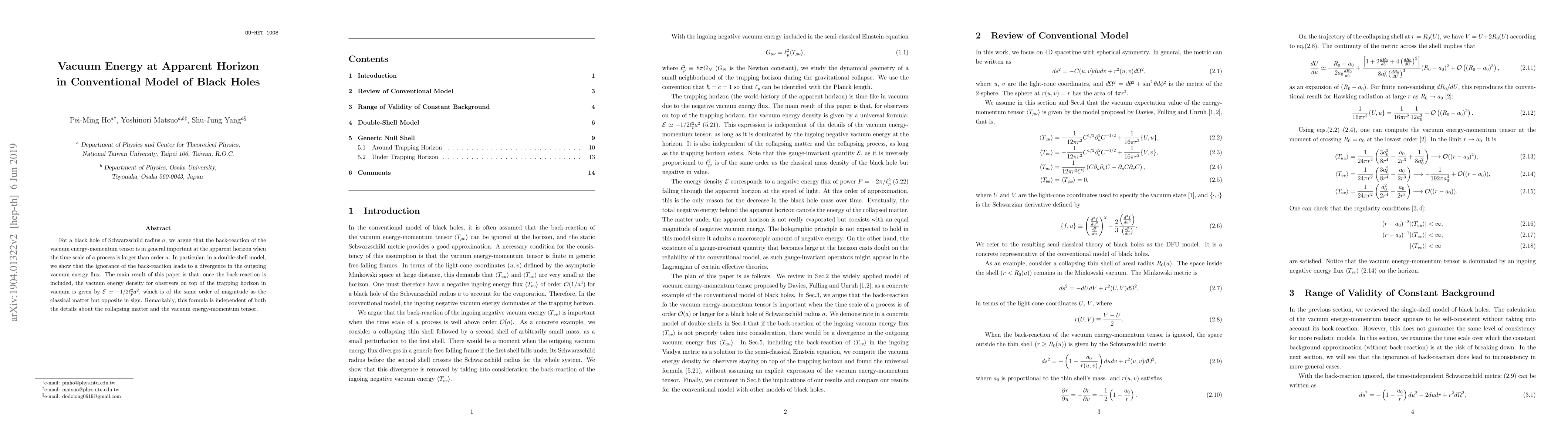 This paper investigates the significance of vacuum energy back-reaction at the apparent horizon of black holes, demonstrating that ignoring it leads to divergences in vacuum energy flux. It concludes that including back-reaction yields a vacuum energy density formula ${\cal E} \simeq -1/2\ell_p^2 a^2$, which is comparable to classical matter but opposite in sign, independent of specific details of the collapsing matter.