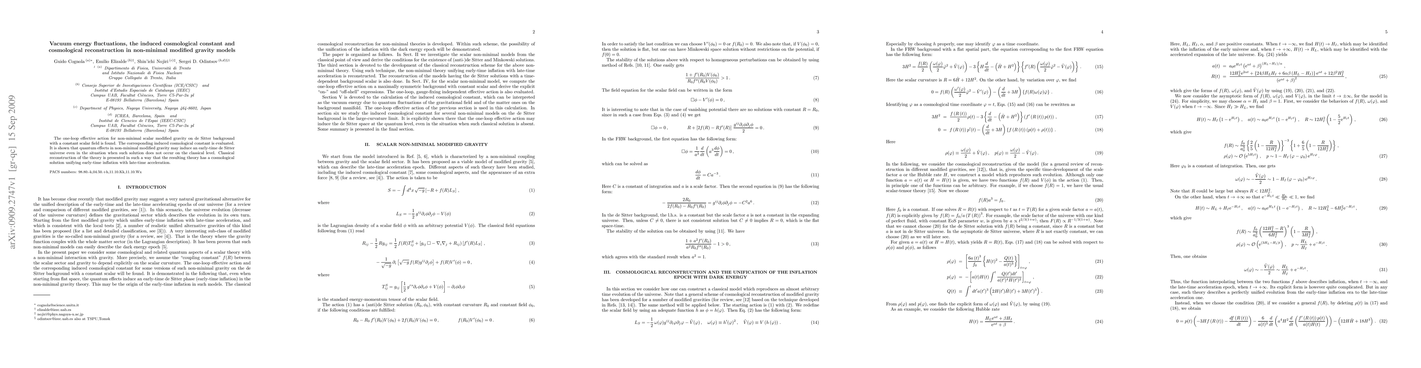 This paper investigates the one-loop effective action in non-minimal scalar modified gravity to evaluate the induced cosmological constant, demonstrating that quantum effects can generate an early-time de Sitter universe even without classical solutions. It presents a cosmological reconstruction that unifies early inflation with late-time acceleration.