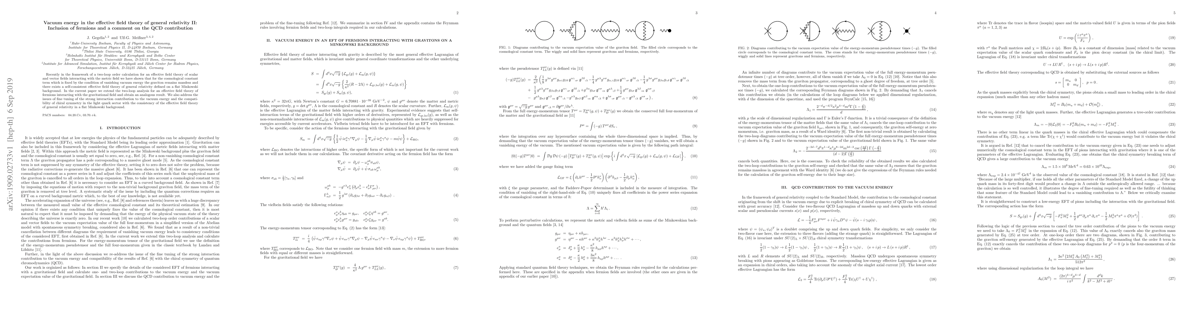 This paper extends a two-loop effective field theory analysis to include fermions, confirming that the graviton remains massless and maintaining a self-consistent theory of general relativity on a flat Minkowski background. It also discusses the fine-tuning of QCD contributions to vacuum energy and the compatibility of chiral symmetry with the theory.