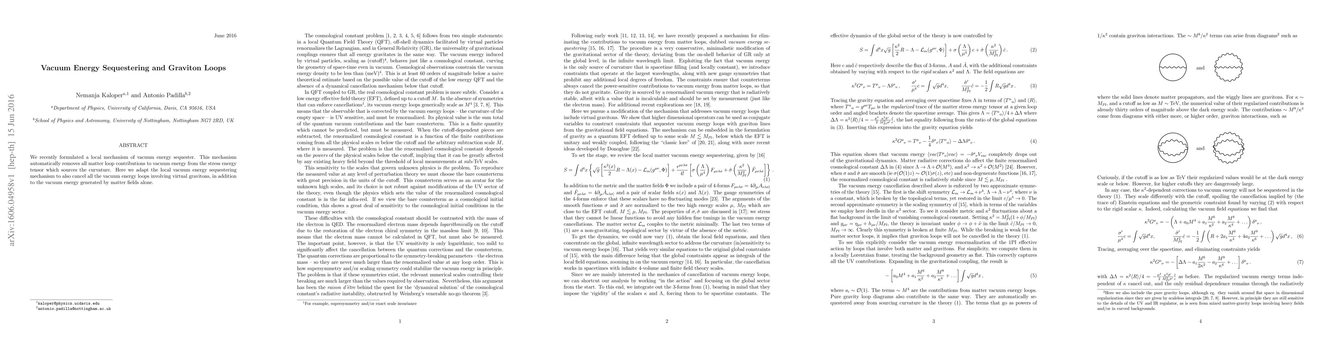 Summary: This paper introduces a local mechanism for vacuum energy sequestering that eliminates matter loop contributions to vacuum energy. It further extends this mechanism to cancel vacuum energy loops involving virtual gravitons, thereby addressing both matter and gravitational contributions.