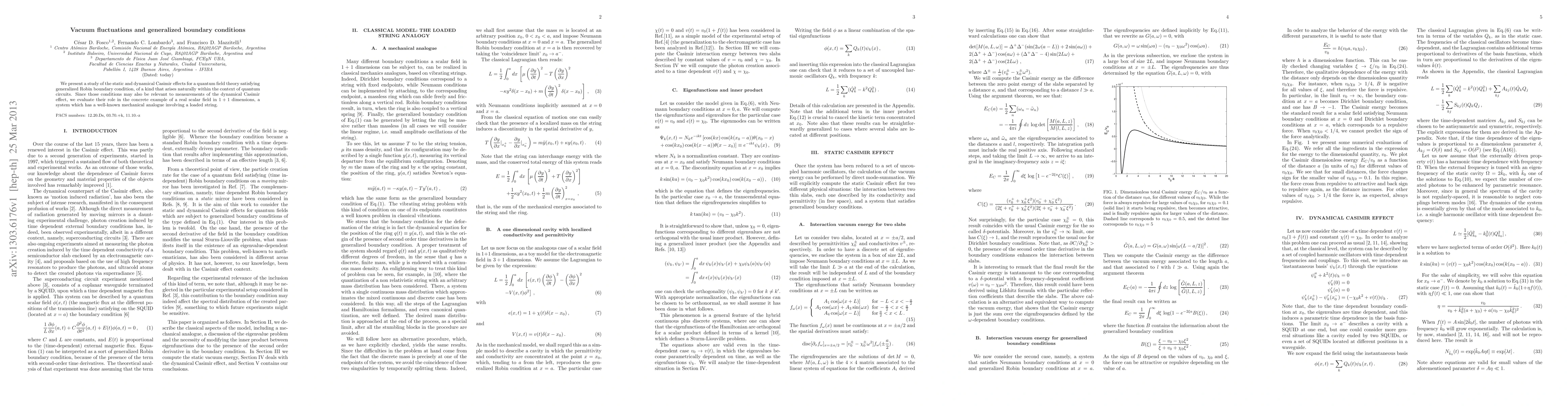 We present a study of the static and dynamical Casimir effects for a quantum field theory satisfying generalized Robin boundary condition, of a kind that arises naturally within the context of quantum circuits. Since those conditions may also be relevant to measurements of the dynamical Casimir effect, we evaluate their role in the concrete example of a real scalar field in 1+1 dimensions, a system which has a well-known mechanical analogue involving a loaded string.