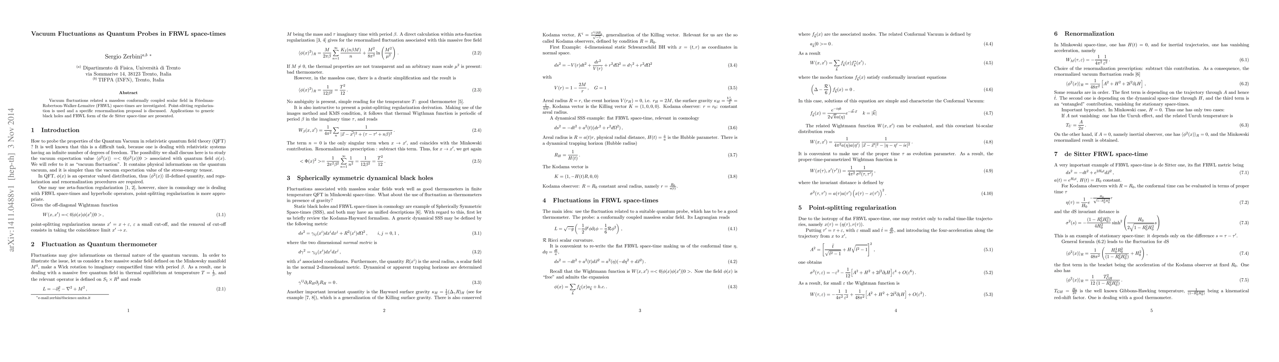 This paper investigates vacuum fluctuations of a massless conformally coupled scalar field in Friedmann-Robertson-Walker-Lemaître (FRWL) space-times, employing point-slitting regularization and a specific renormalization proposal, with applications to generic black holes and de Sitter space-time.
