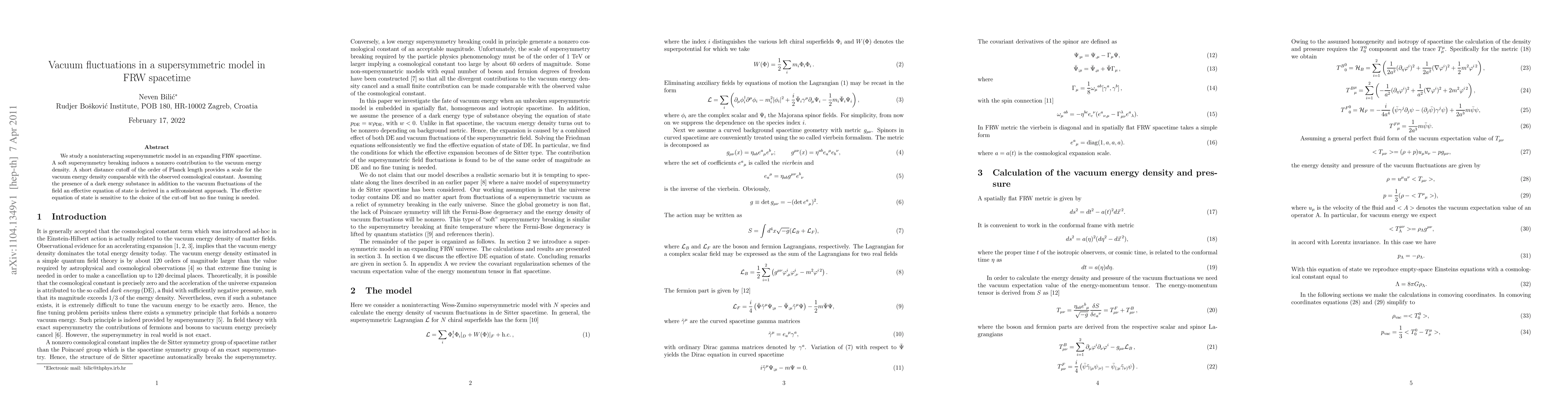 This paper explores vacuum fluctuations in a supersymmetric model within an expanding Friedmann-Robertson-Walker (FRW) spacetime, showing that soft supersymmetry breaking can lead to a vacuum energy density comparable to the observed cosmological constant. An effective equation of state is derived, sensitive to the cutoff choice but requiring no fine-tuning.