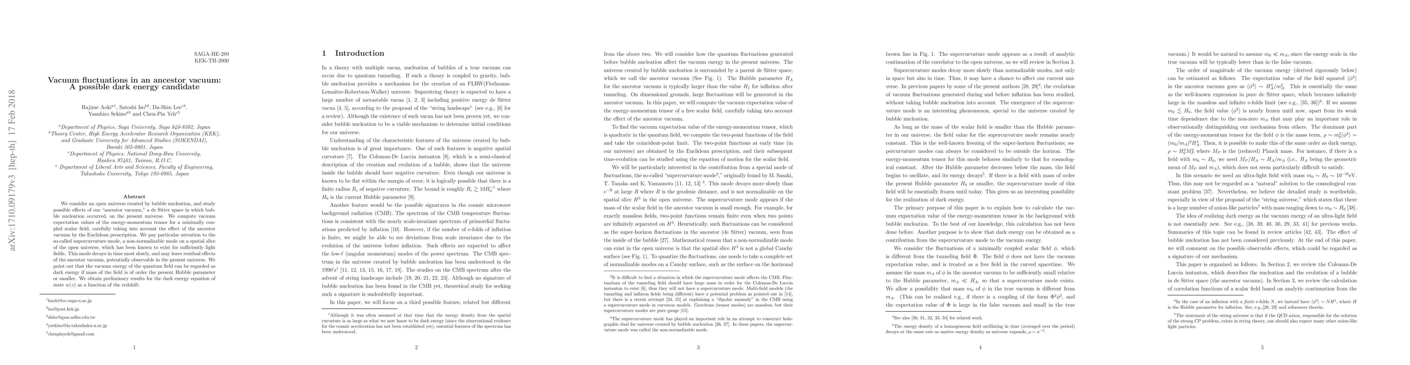 This paper explores the influence of an "ancestor vacuum" (de Sitter space) on the current open universe, focusing on the vacuum expectation values of energy-momentum tensors. It identifies a supercurvature mode that decays slowly over time, suggesting that vacuum energy from a quantum field could act as dark energy if its mass is comparable to the Hubble parameter, providing preliminary results for the dark energy equation of state.