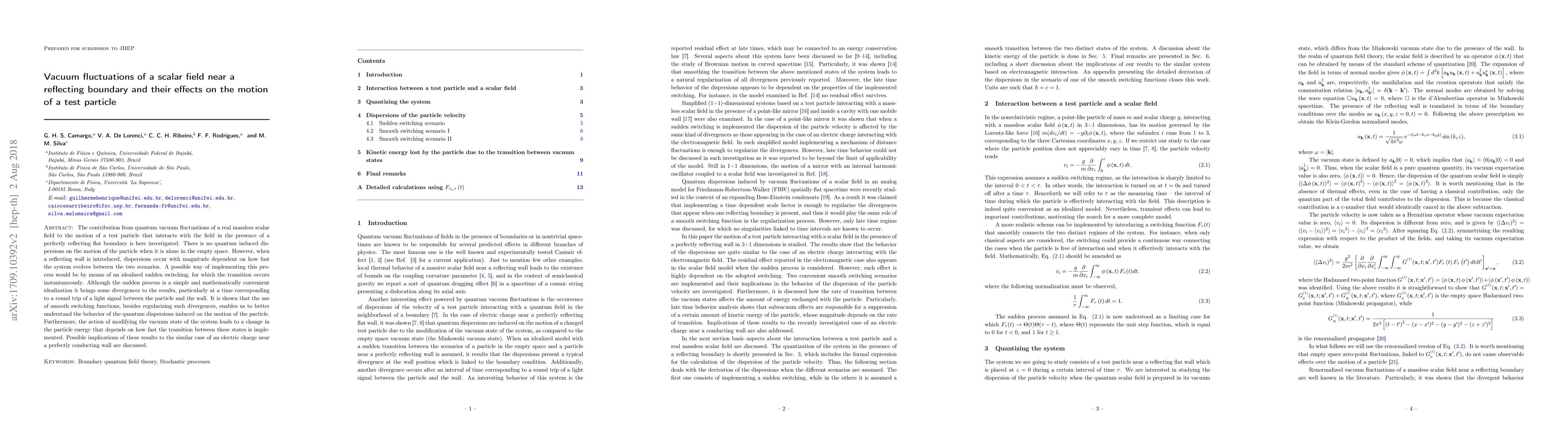 Research investigates quantum vacuum fluctuations of a scalar field near a reflecting boundary, finding dispersions in particle motion when a wall is introduced, with magnitude dependent on the speed of transition between scenarios.