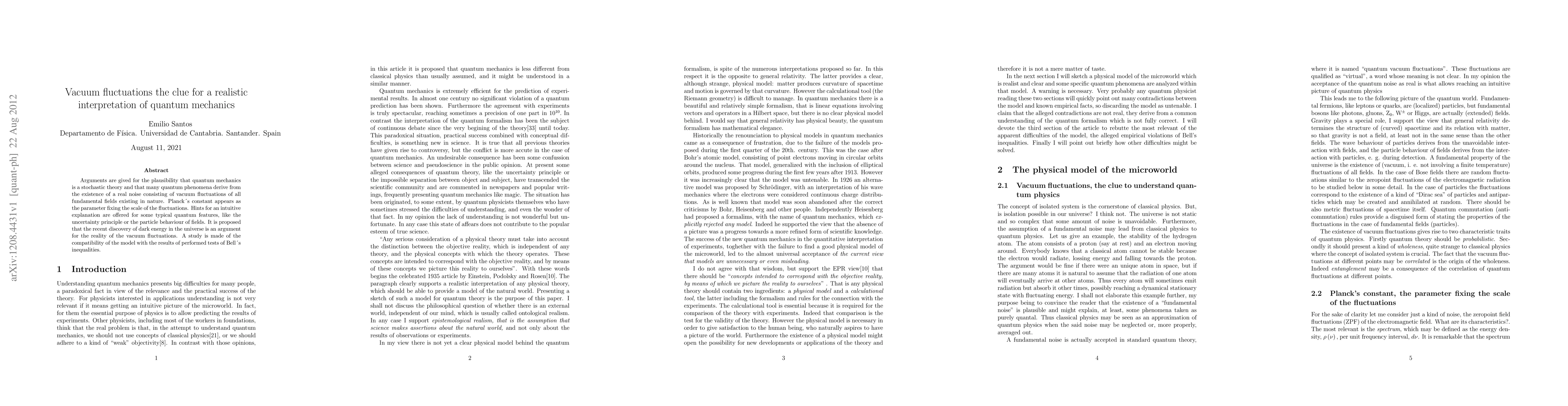 This paper argues that quantum mechanics can be interpreted as a stochastic theory driven by real vacuum fluctuations, with Planck's constant determining the scale of these fluctuations. It proposes that these fluctuations provide intuitive explanations for quantum phenomena like the uncertainty principle and the particle behavior of fields, and suggests that dark energy supports the reality of vacuum fluctuations. The study also examines the compatibility of this model with Bell's inequality tests.