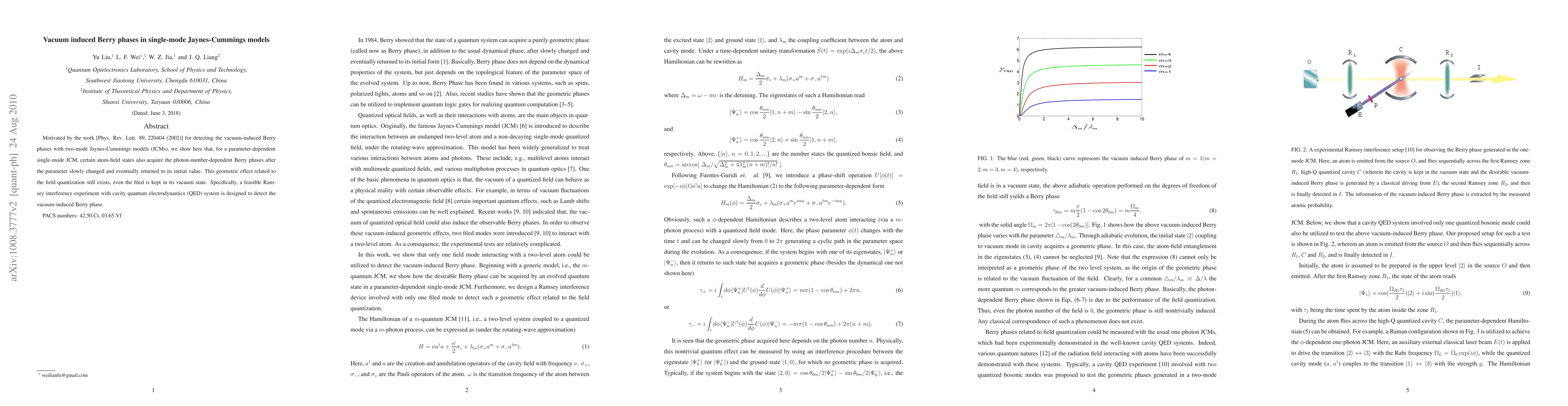 This paper demonstrates that single-mode Jaynes-Cummings models can exhibit photon-number-dependent Berry phases even when the field is in a vacuum state, following a slow change in parameters. A Ramsey interference experiment within a cavity quantum electrodynamics system is proposed to detect these vacuum-induced Berry phases.