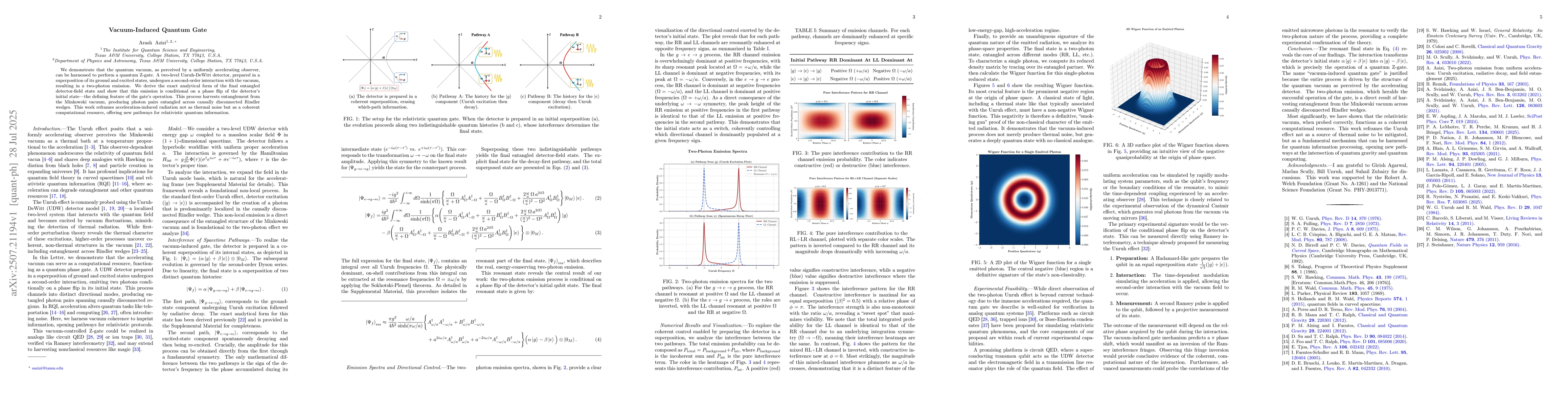 We demonstrate that the quantum vacuum, as perceived by a uniformly accelerating observer, can be harnessed to perform a quantum Z-gate. A two-level Unruh-DeWitt detector, prepared in a superposition of its ground and excited states, undergoes a second-order interaction with the vacuum, resulting in a two-photon emission. We derive the exact analytical form of the final entangled detector-field state and show that this emission is conditional on a phase flip of the detector's initial state-the defining feature of the gate's operation. This process harvests entanglement from the Minkowski vacuum, producing photon pairs entangled across causally disconnected Rindler wedges. This work reframes acceleration-induced radiation not as thermal noise but as a coherent computational resource, offering new pathways for relativistic quantum information.