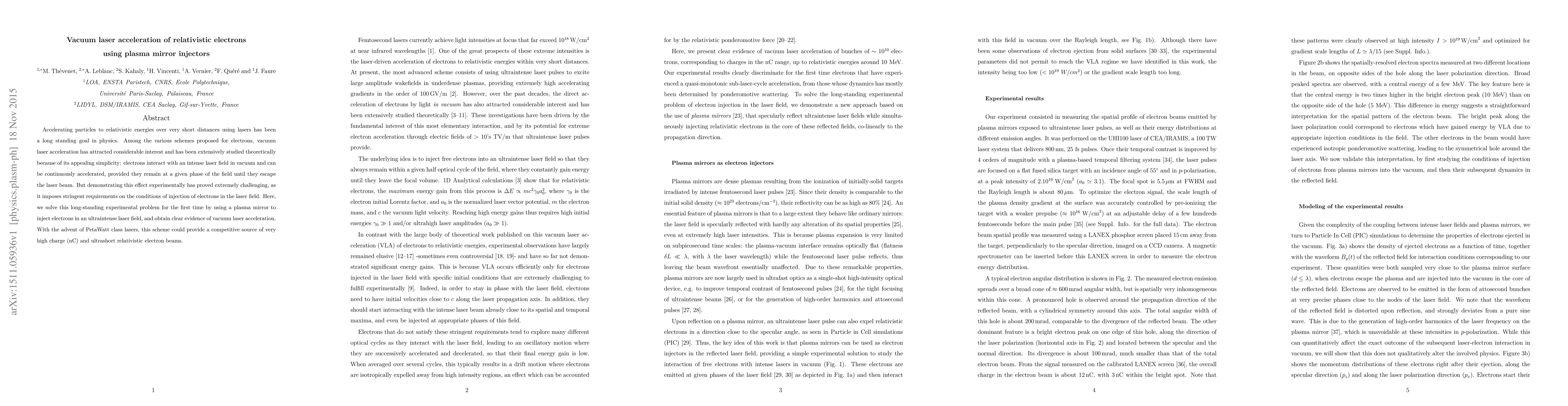 This paper demonstrates the successful experimental realization of vacuum laser acceleration of relativistic electrons using plasma mirrors to inject electrons into an ultraintense laser field, solving a long-standing challenge in the field. The findings suggest this method could yield high-charge, ultrashort relativistic electron beams with the advent of PetaWatt lasers.