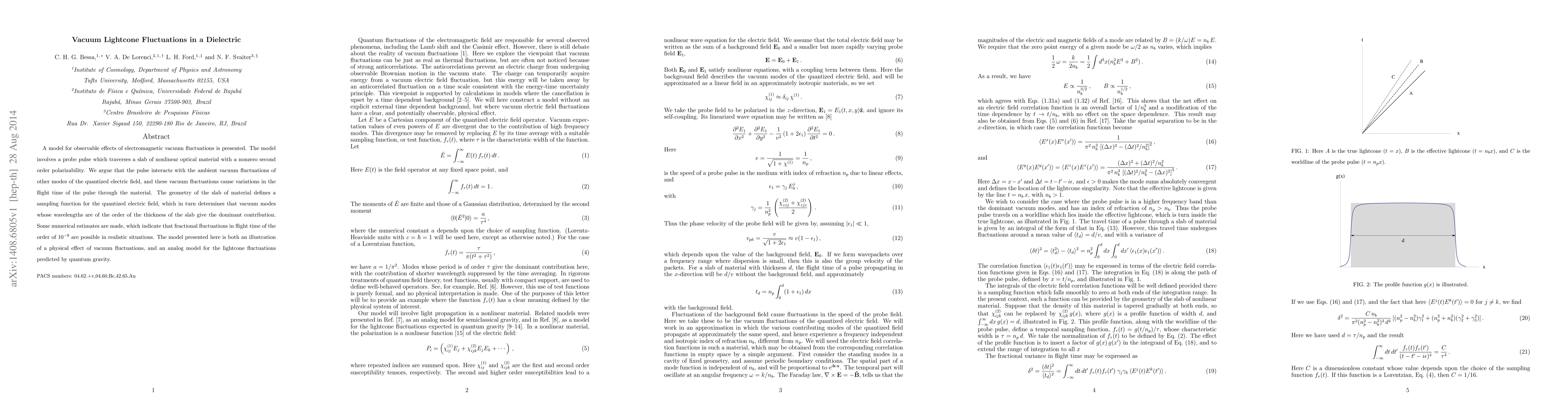 A model for observable effects of electromagnetic vacuum fluctuations is presented. The model involves a probe pulse which traverses a slab of nonlinear optical material with a nonzero second order polarizability. We argue that the pulse interacts with the ambient vacuum fluctuations of other modes of the quantized electric field, and these vacuum fluctuations cause variations in the flight time of the pulse through the material. The geometry of the slab of material defines a sampling function for the quantized electric field, which in turn determines that vacuum modes whose wavelengths are of the order of the thickness of the slab give the dominant contribution. Some numerical estimates are made, which indicate that fractional fluctuations in flight time of the order of $10^{-9}$ are possible in realistic situations. The model presented here is both an illustration of a physical effect of vacuum fluctuations, and an analog model for the lightcone fluctuations predicted by quantum gravity.