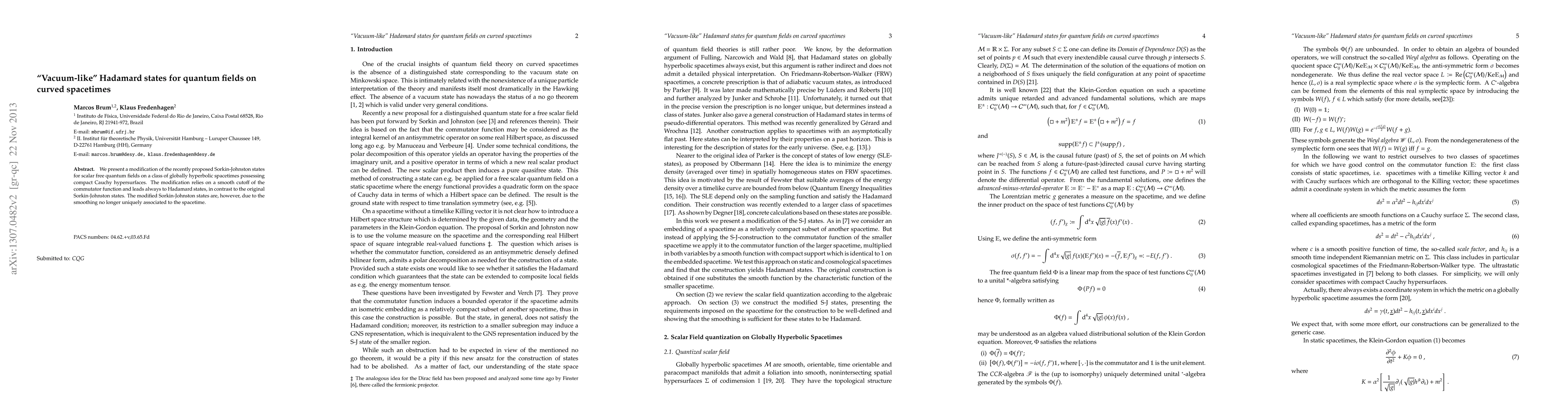 This paper modifies Sorkin-Johnston states for quantum fields on curved spacetimes by smoothing the commutator function, resulting in "vacuum-like" Hadamard states that are always applicable, though they no longer uniquely correspond to the spacetime.