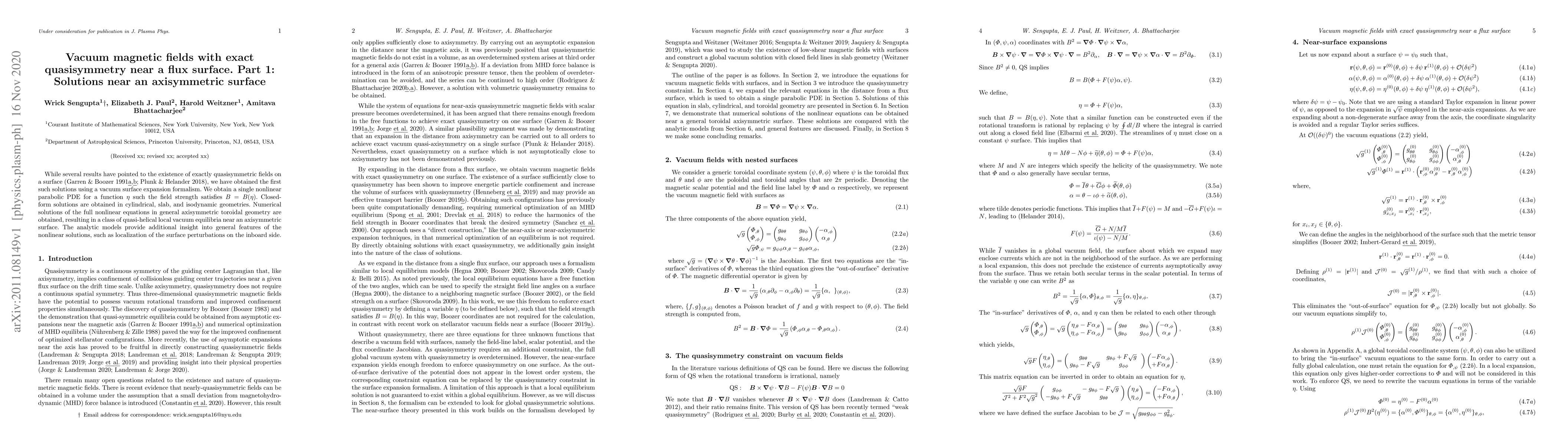 While several results have pointed to the existence of exactly quasisymmetric fields on a surface (Garren & Boozer 1991a,b; Plunk & Helander 2018), we have obtained the first such solutions using a vacuum surface expansion formalism. We obtain a single nonlinear parabolic PDE for a function $\eta$ such the field strength satisfies $B = B(\eta)$. Closed-form solutions are obtained in cylindrical, slab, and isodynamic geometries. Numerical solutions of the full nonlinear equations in general axisymmetric toroidal geometry are obtained, resulting in a class of quasi-helical local vacuum equilibria near an axisymmetric surface. The analytic models provide additional insight into general features of the nonlinear solutions, such as localization of the surface perturbations on the inboard side.