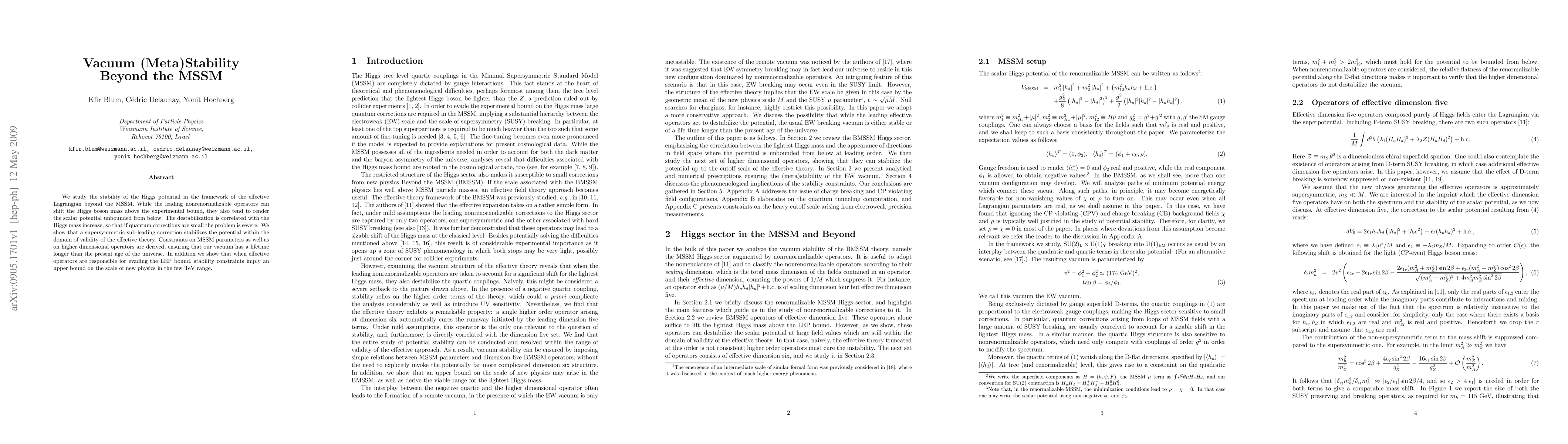 This paper investigates the vacuum stability of the Higgs potential beyond the Minimal Supersymmetric Standard Model (MSSM) by considering nonrenormalizable operators. It finds that while these operators can raise the Higgs mass, they also risk making the potential unbounded from below, but a supersymmetric correction stabilizes it within the effective theory's domain.