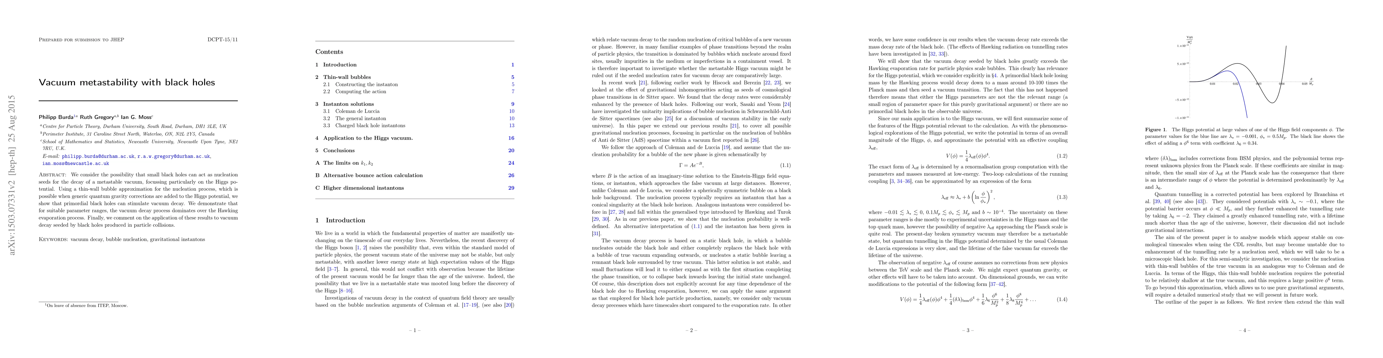 We consider the possibility that small black holes can act as nucleation seeds for the decay of a metastable vacuum, focussing particularly on the Higgs potential. Using a thin-wall bubble approximation for the nucleation process, which is possible when generic quantum gravity corrections are added to the Higgs potential, we show that primordial black holes can stimulate vacuum decay. We demonstrate that for suitable parameter ranges, the vacuum decay process dominates over the Hawking evaporation process. Finally, we comment on the application of these results to vacuum decay seeded by black holes produced in particle collisions.