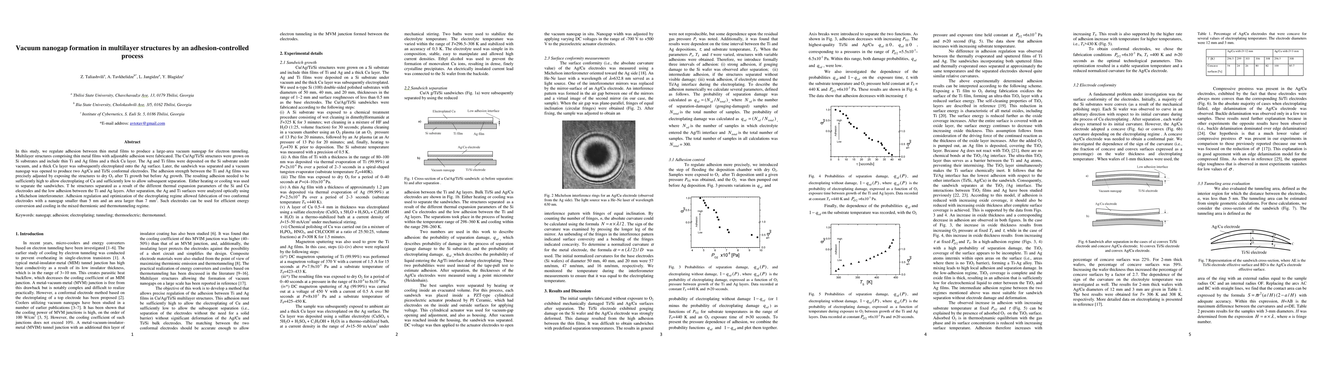 Researchers created vacuum nanogaps in multilayer structures by controlling adhesion between metal films, resulting in conformal electrodes with nanogaps smaller than 5nm and areas larger than 7mm2.