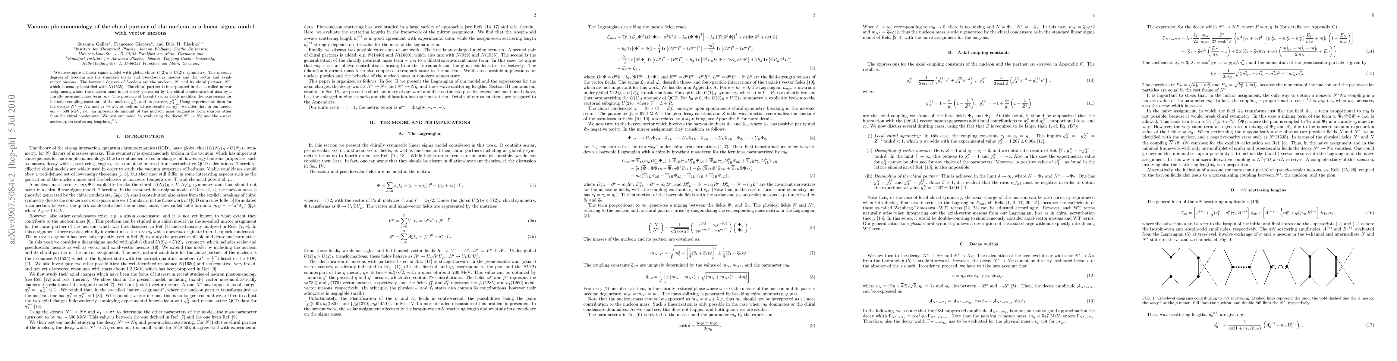 We investigate a linear sigma model with global chiral $U(2)_{R} \times U(2)_{L}$ symmetry. The mesonic degrees of freedom are the standard scalar and pseudoscalar mesons and the vector and axial-vector mesons. The baryonic degrees of freedom are the nucleon, $N$, and its chiral partner, $N^{*}$, which is usually identified with N(1535). The chiral partner is incorporated in the so-called mirror assignment, where the nucleon mass is not solely generated by the chiral condensate but also by a chirally invariant mass term, $m_{0}$. The presence of (axial-) vector fields modifies the expressions for the axial coupling constants of the nucleon, $g_{A}^{N}$, and its partner, $g_{A}^{N^{*}}$. Using experimental data for the decays $N^{*} \to N \pi$ and $a_{1} \to\pi\gamma$, as well as lattice results for $g_{A}^{N^{*}}$ we infer $m_{0}\sim500$ MeV, i.e., an appreciable amount of the nucleon mass originates from sources other than the chiral condensate. We test our model by evaluating the decay $N^{*} \to N \eta$ and the s-wave nucleon-pion scattering lengths $a_{0}^{(\pm)}$.