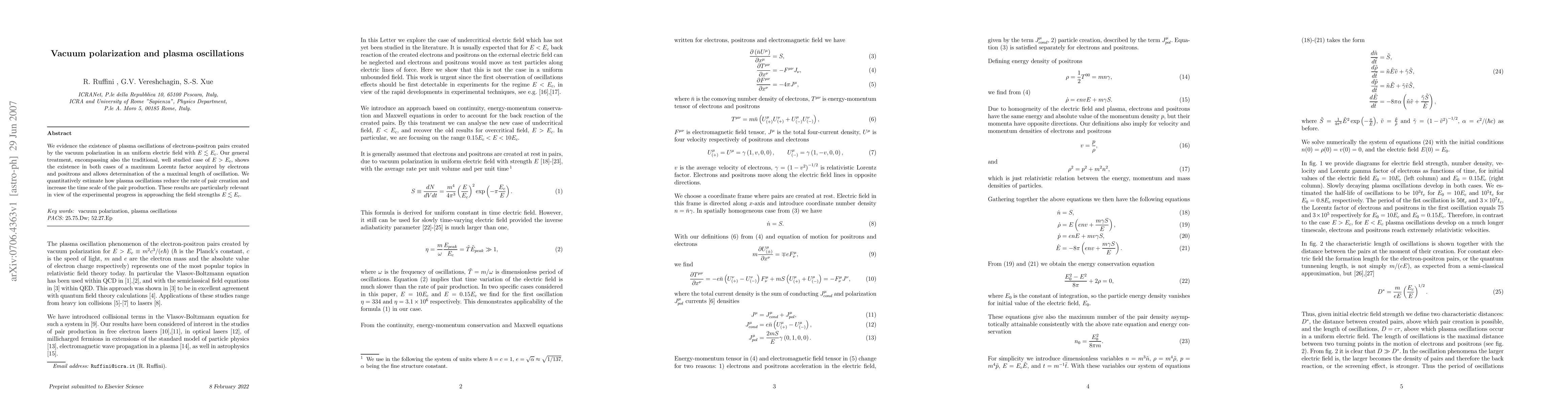 Researchers discover plasma oscillations of electrons-positron pairs created by vacuum polarization in electric fields, which can affect pair creation rates and timescales.