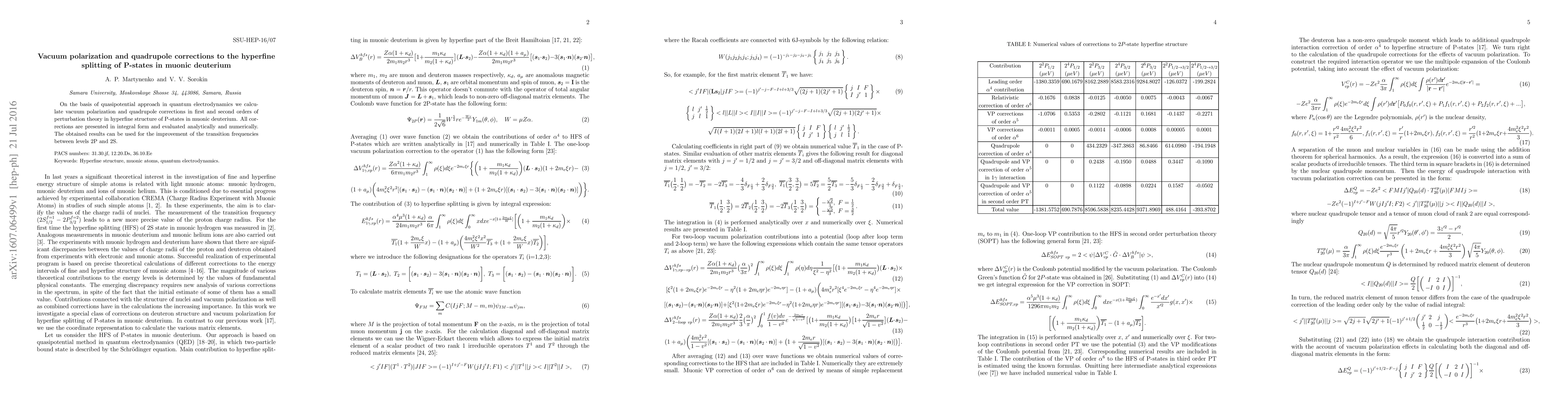 This paper calculates vacuum polarization and quadrupole corrections to the hyperfine splitting of P-states in muonic deuterium using the quasipotential approach in quantum electrodynamics, providing both analytical and numerical evaluations for potential improvements in transition frequency measurements between 2P and 2S levels.
