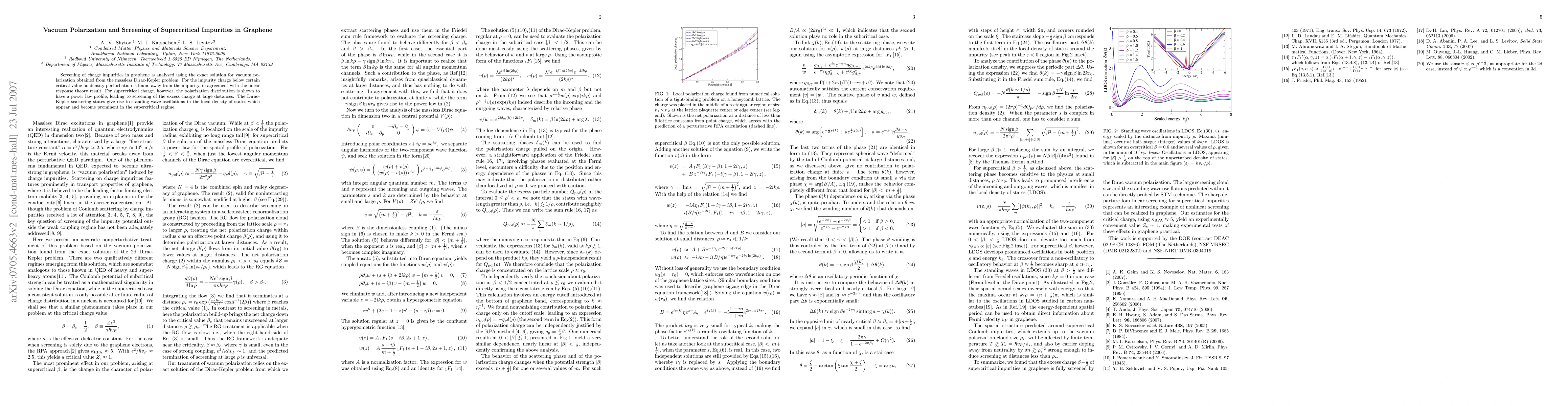 The exact solution for vacuum polarization obtained from the massless Dirac-Kepler problem provides a new understanding of graphene screening.