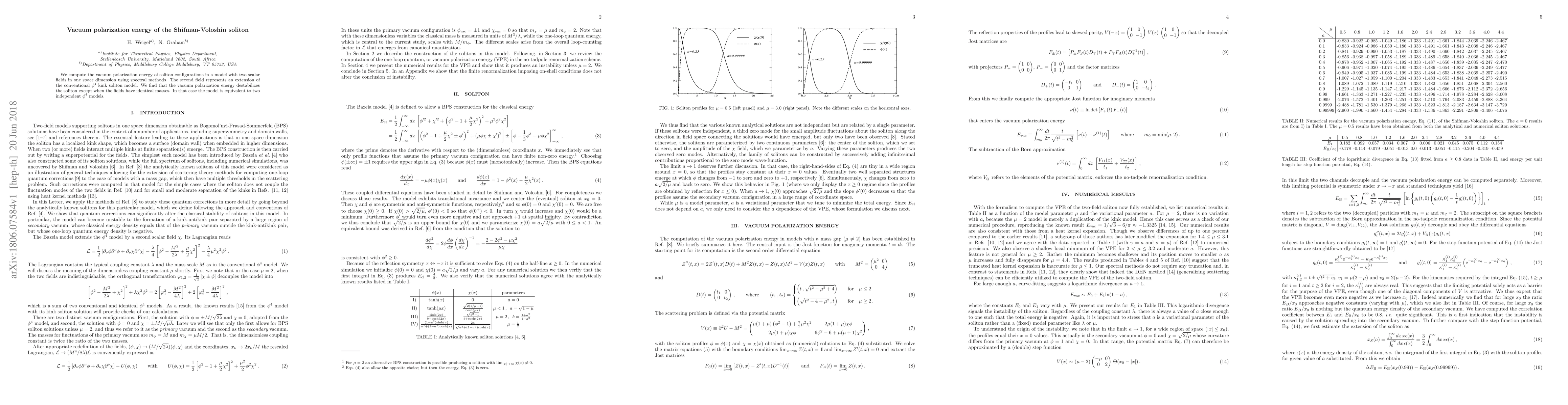 This paper calculates the vacuum polarization energy for soliton configurations in a two-scalar field model using spectral methods, finding that it destabilizes the soliton unless the fields have identical masses, in which case the model behaves like two independent $\phi^4$ models.