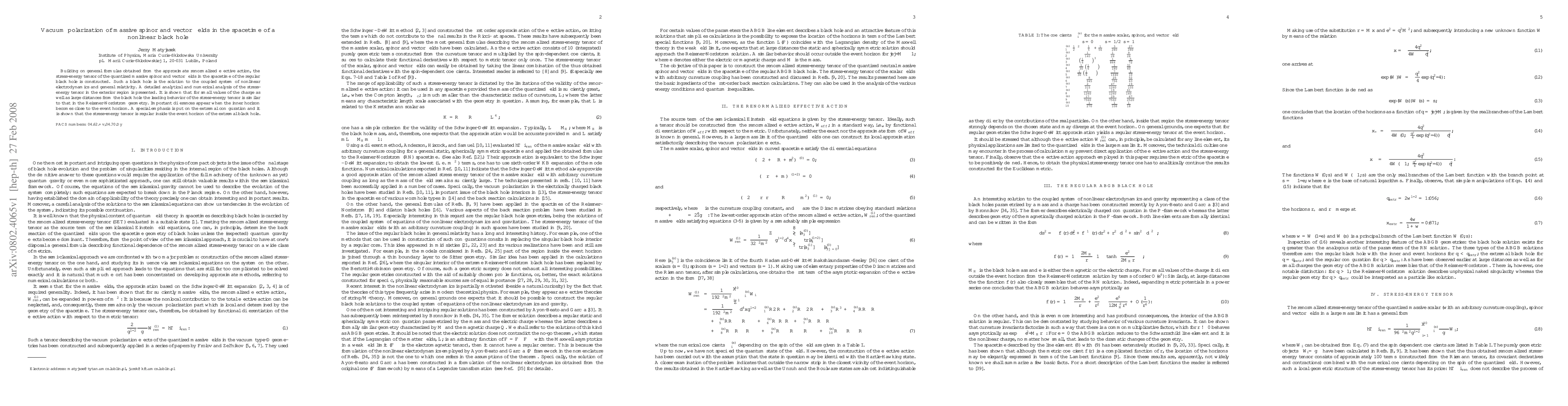 This paper analyzes the stress-energy tensor of massive spinor and vector fields in a nonlinear black hole's spacetime, revealing similarities with Reissner-Nordstr"om geometry at large distances but differences near the event horizon.
