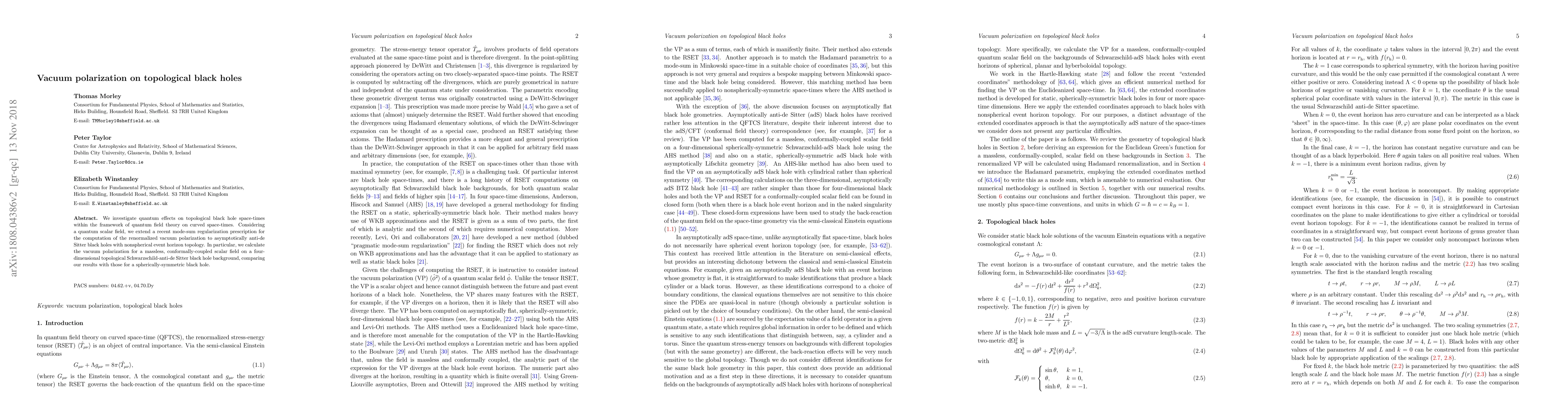 This study extends the understanding of quantum field theory effects on topological black holes, providing insights into how the event horizon topology influences the VP, which could have implications for black hole thermodynamics and the stability of black holes.