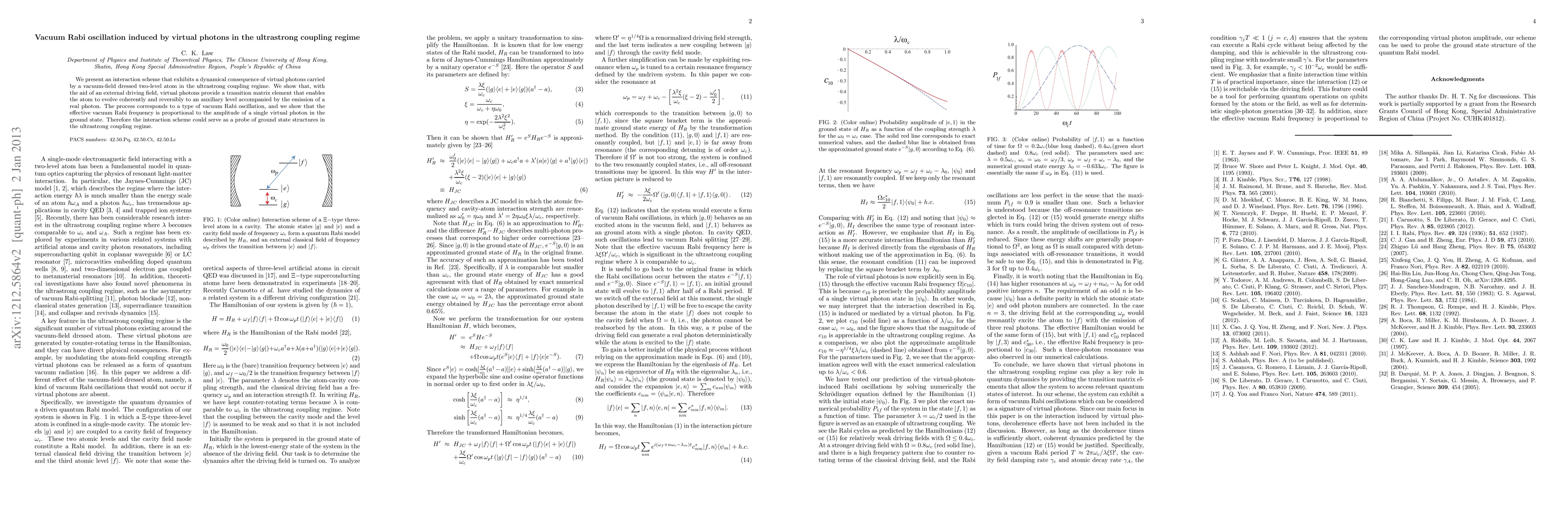 This paper explores a novel interaction scheme in the ultrastrong coupling regime where virtual photons facilitate vacuum Rabi oscillations. The scheme allows a two-level atom to coherently transition to an auxiliary level via an external driving field, enabling the emission of a real photon and serving as a probe for ground state structures.