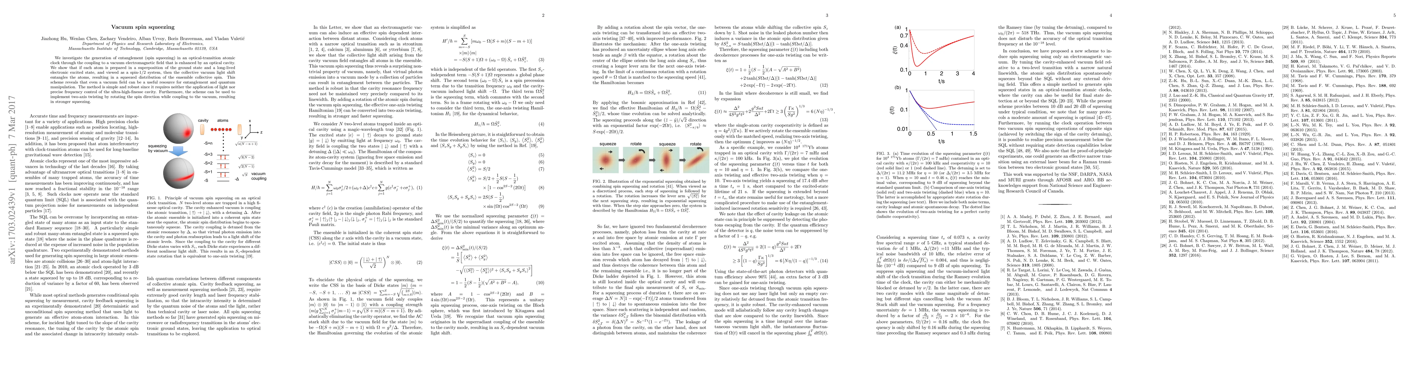 This paper explores the generation of entanglement in an atomic clock via vacuum electromagnetic fields enhanced by an optical cavity, demonstrating that vacuum light shift can entangle atoms and produce spin squeezing without requiring light or precise frequency control. The method also enables stronger squeezing through two-axis twisting.