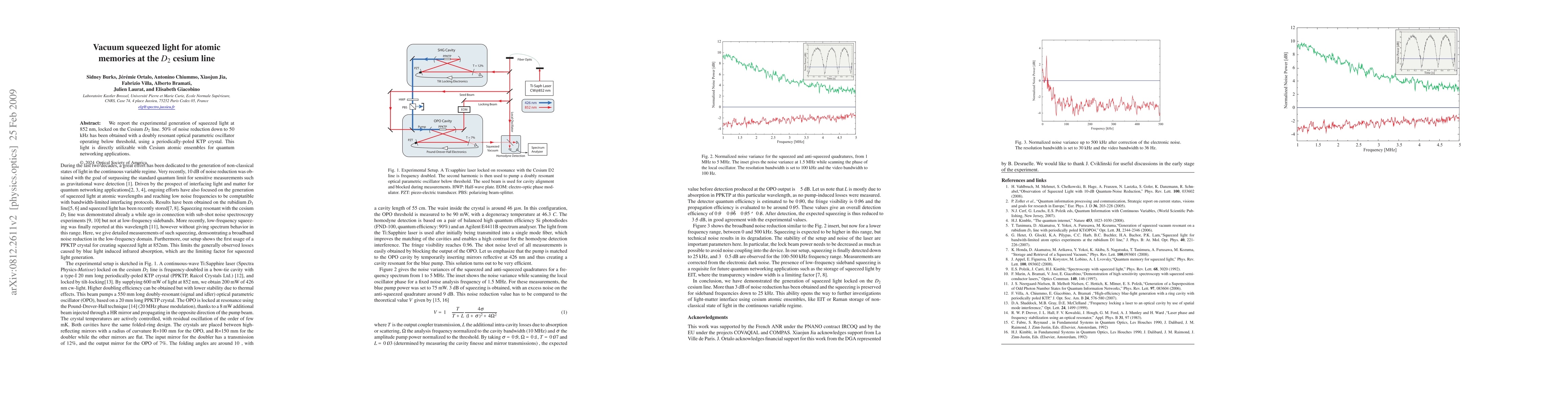 Researchers successfully generated squeezed light at 852 nm, reducing noise to 50 kHz using a doubly resonant optical parametric oscillator, enabling direct application in quantum networking with Cesium atomic ensembles.