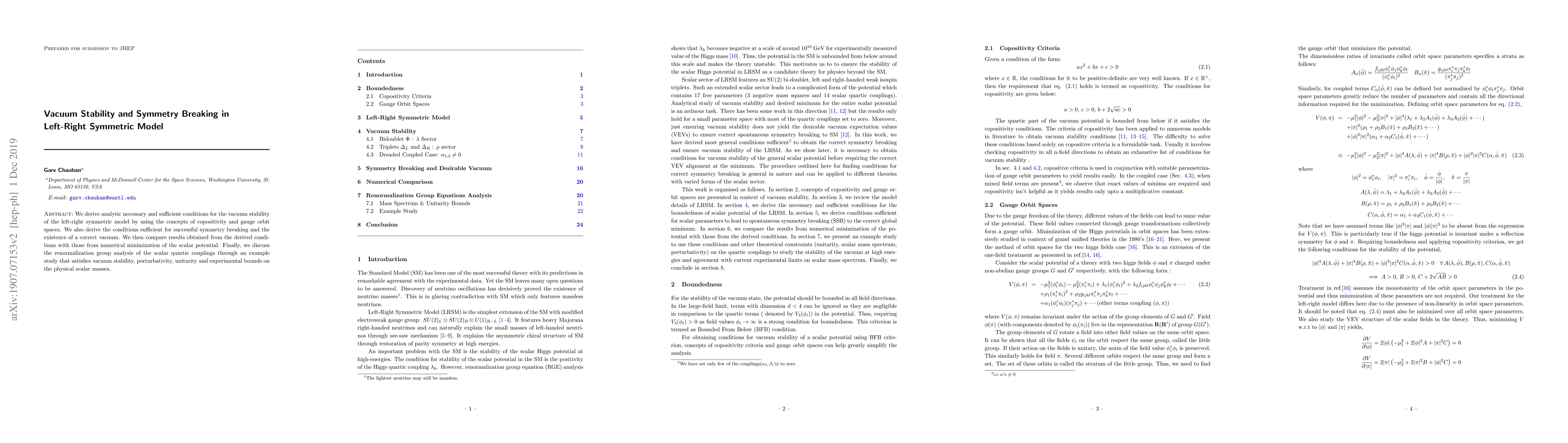 This paper derives analytic conditions for vacuum stability and symmetry breaking in the left-right symmetric model using copositivity and gauge orbit spaces, and compares these with numerical results. It also examines the renormalization group behavior of scalar quartic couplings within an example model that meets stability, perturbativity, unitarity, and experimental constraints.