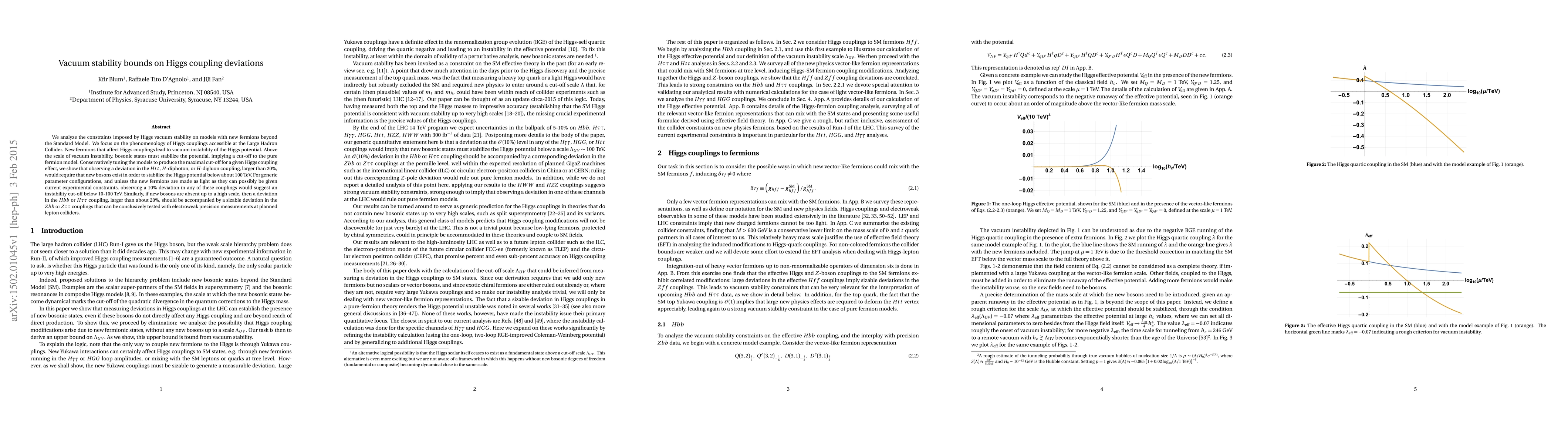 We analyze the constraints imposed by Higgs vacuum stability on models with new fermions beyond the Standard Model. We focus on the phenomenology of Higgs couplings accessible at the Large Hadron Collider. New fermions that affect Higgs couplings lead to vacuum instability of the Higgs potential. Above the scale of vacuum instability, bosonic states must stabilize the potential, implying a cut-off to the pure fermion model. Conservatively tuning the models to produce the maximal cut-off for a given Higgs coupling effect, we show that observing a deviation in the $Htt$, $H$-diphoton, or $H$-digluon coupling, larger than 20$%$, would require that new bosons exist in order to stabilize the Higgs potential below about 100 TeV. For generic parameter configurations, and unless the new fermions are made as light as they can possibly be given current experimental constraints, observing a 10$%$ deviation in any of these couplings would suggest an instability cut-off below 10-100 TeV. Similarly, if new bosons are absent up to a high scale, then a deviation in the $Hbb$ or $H\tau\tau$ coupling, larger than about 20$%$, should be accompanied by a sizable deviation in the $Zbb$ or $Z\tau\tau$ couplings that can be conclusively tested with electroweak precision measurements at planned lepton colliders.
