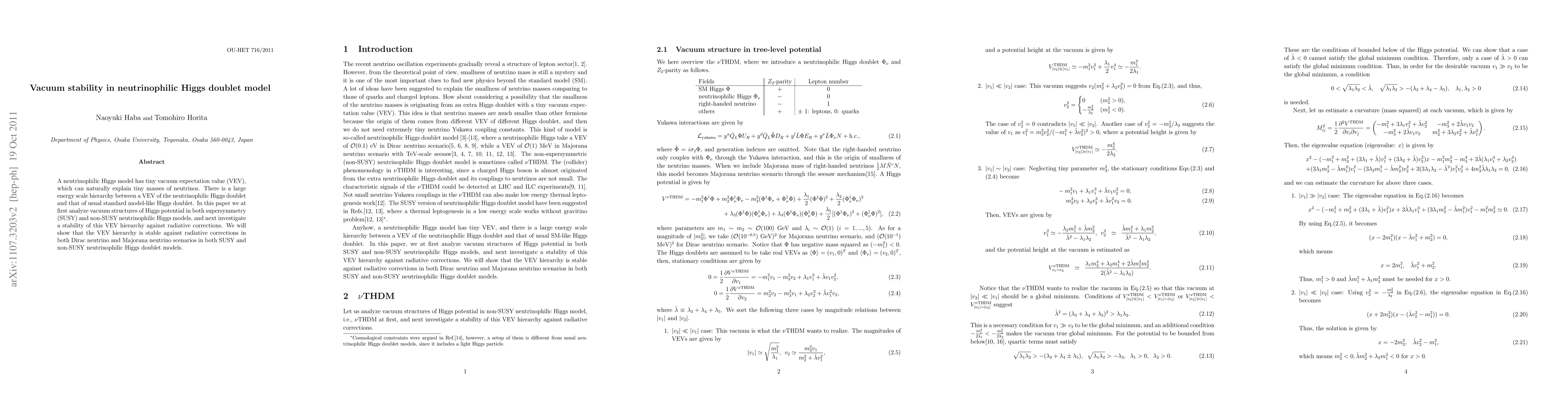 This paper investigates the vacuum stability of a neutrinophilic Higgs doublet model, which explains tiny neutrino masses through a small vacuum expectation value. It analyzes the stability of this VEV hierarchy against radiative corrections in both supersymmetric and non-supersymmetric scenarios, concluding that the hierarchy remains stable in both Dirac and Majorana neutrino scenarios.