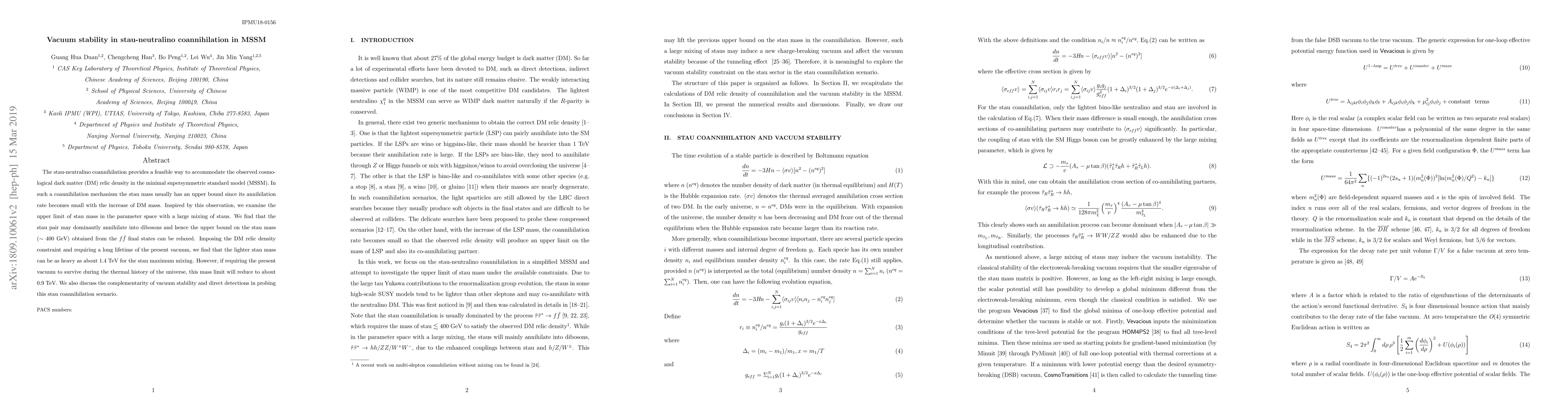 This paper investigates the upper limit of stau mass in the MSSM under stau-neutralino coannihilation, finding that the upper bound can be relaxed to around 1.4 TeV due to dominant diboson annihilations. Vacuum stability constraints further reduce this limit to about 0.9 TeV, highlighting the interplay between vacuum stability and dark matter detection.