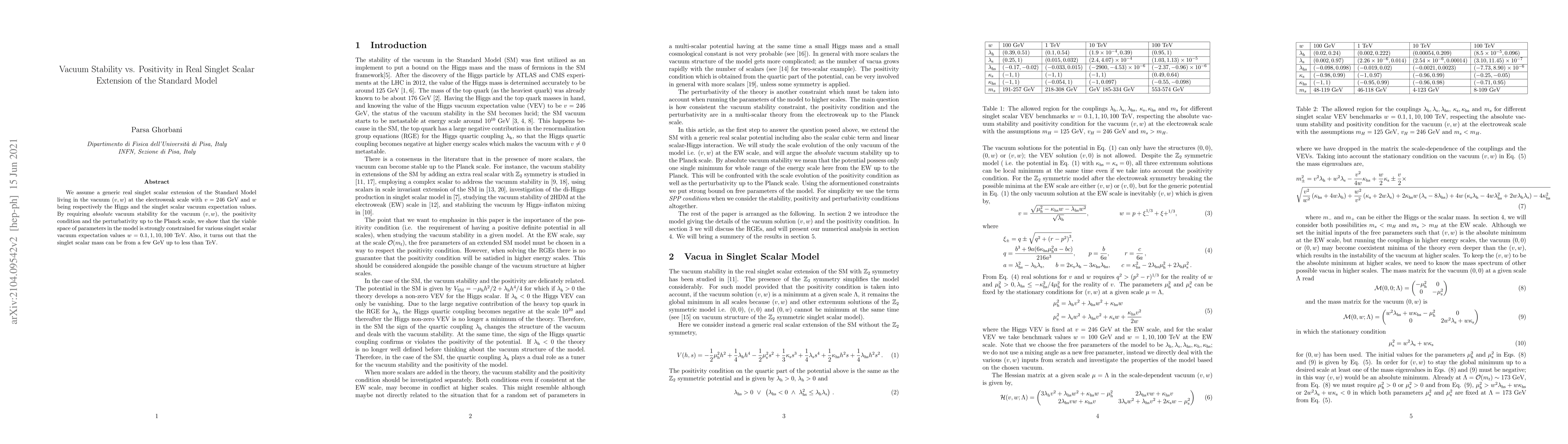 This paper investigates the constraints on a real singlet scalar extension of the Standard Model, focusing on vacuum stability, positivity, and perturbativity up to the Planck scale. It finds that these conditions significantly limit the viable parameter space for various singlet scalar vacuum expectation values, ranging from 0.1 to 100 TeV, with the singlet scalar mass potentially spanning from a few GeV to below the TeV scale.