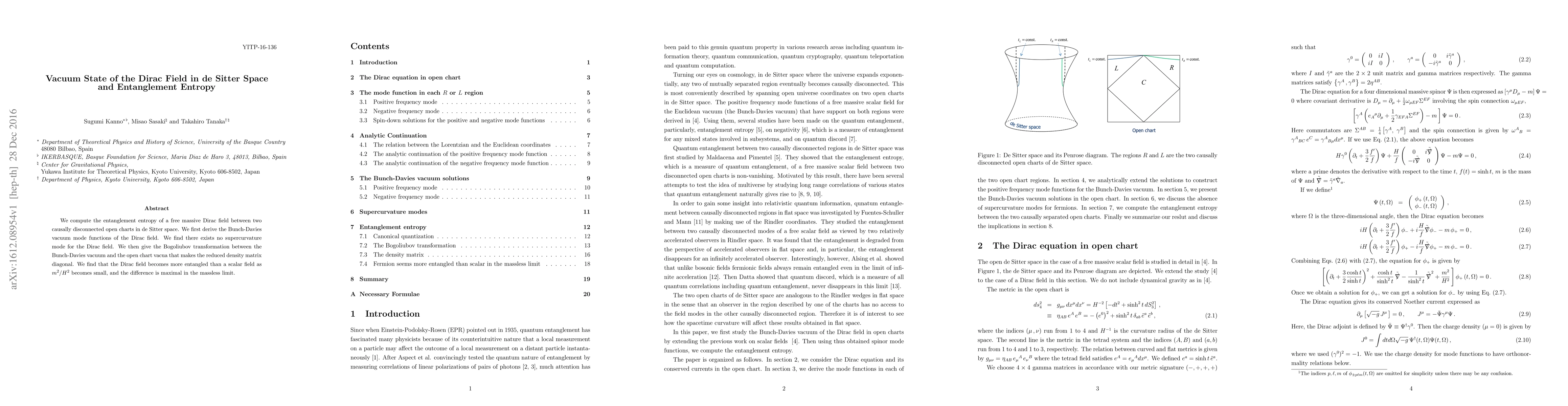 We compute the entanglement entropy of a free massive Dirac field between two causally disconnected open charts in de Sitter space. We first derive the Bunch-Davies vacuum mode functions of the Dirac field. We find there exists no supercurvature mode for the Dirac field. We then give the Bogoliubov transformation between the Bunch-Davies vacuum and the open chart vacua that makes the reduced density matrix diagonal. We find that the Dirac field becomes more entangled than a scalar field as $m^2/H^2$ becomes small, and the difference is maximal in the massless limit.