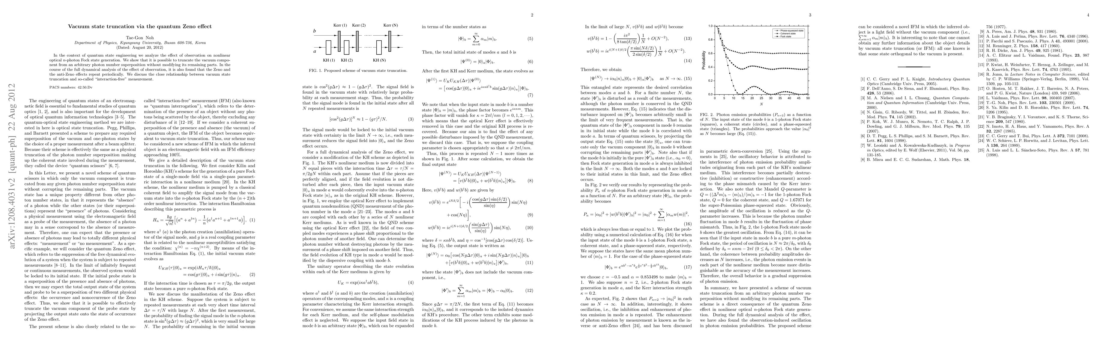In the context of quantum state engineering we analyze the effect of observation on nonlinear optical $n$-photon Fock state generation. We show that it is possible to truncate the vacuum component from an arbitrary photon number superposition without modifying its remaining parts. In the course of the full dynamical analysis of the effect of observation, it is also found that the Zeno and the anti-Zeno effects repeat periodically. We discuss the close relationship between vacuum state truncation and so-called "interaction-free" measurement.