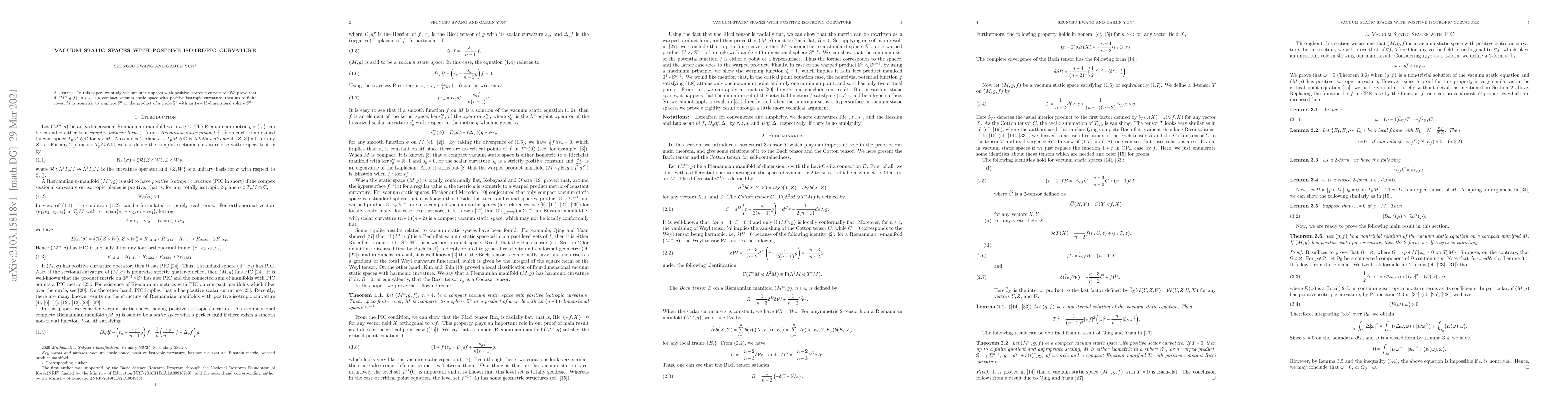 This paper proves that compact vacuum static spaces with positive isotropic curvature, for dimensions $n \ge 4$, are isometric, up to finite cover, either to an $n$-dimensional sphere ${\Bbb S}^n$ or to the product of a circle ${\Bbb S}^1$ and an $(n-1)$-dimensional sphere ${\Bbb S}^{n-1}$.